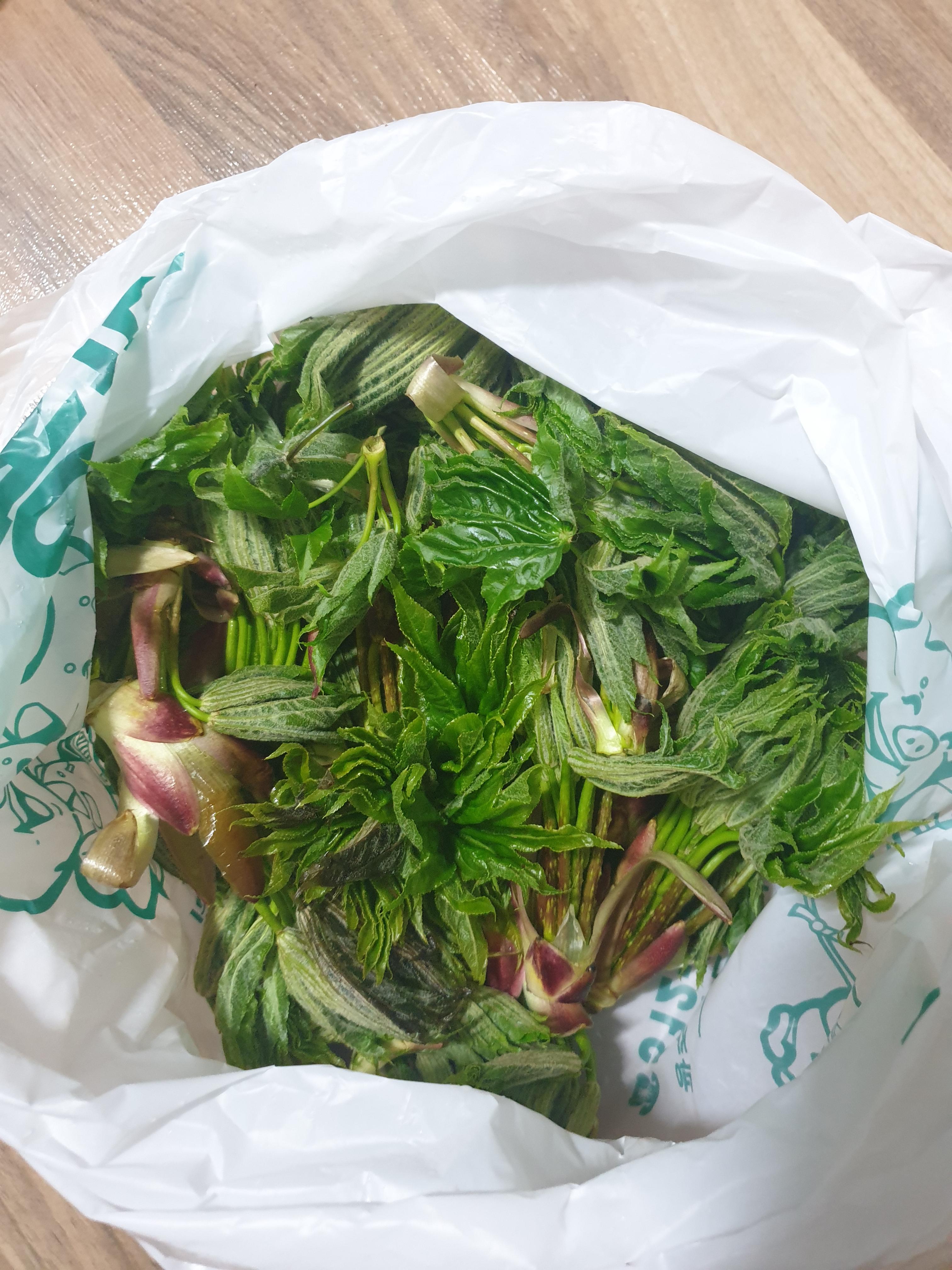 엉아가 접때 김천산 엄마표 두릅이랑 엄순은 다 묵고 짱아치 담굴끼 없다 징징댔더니