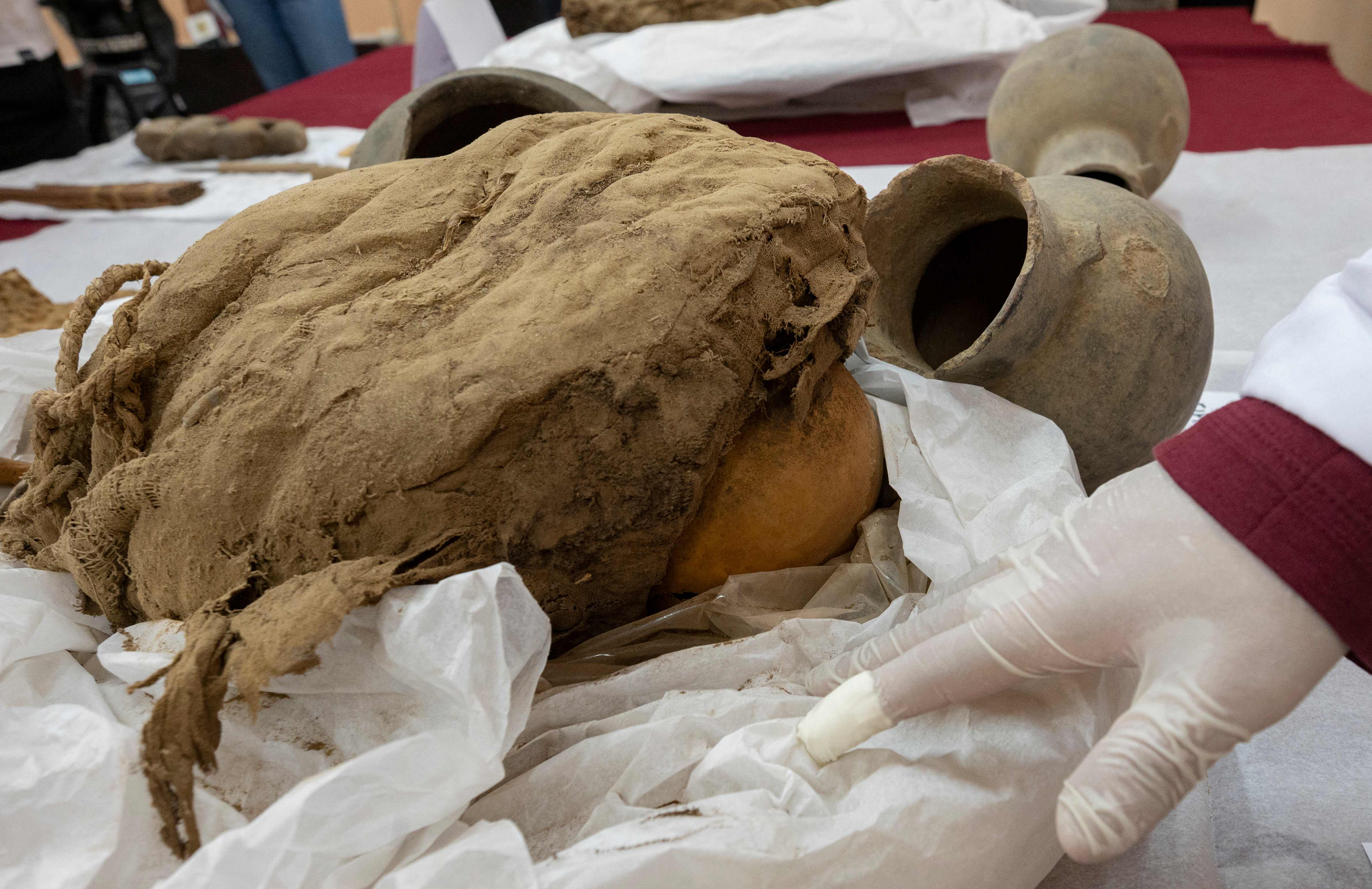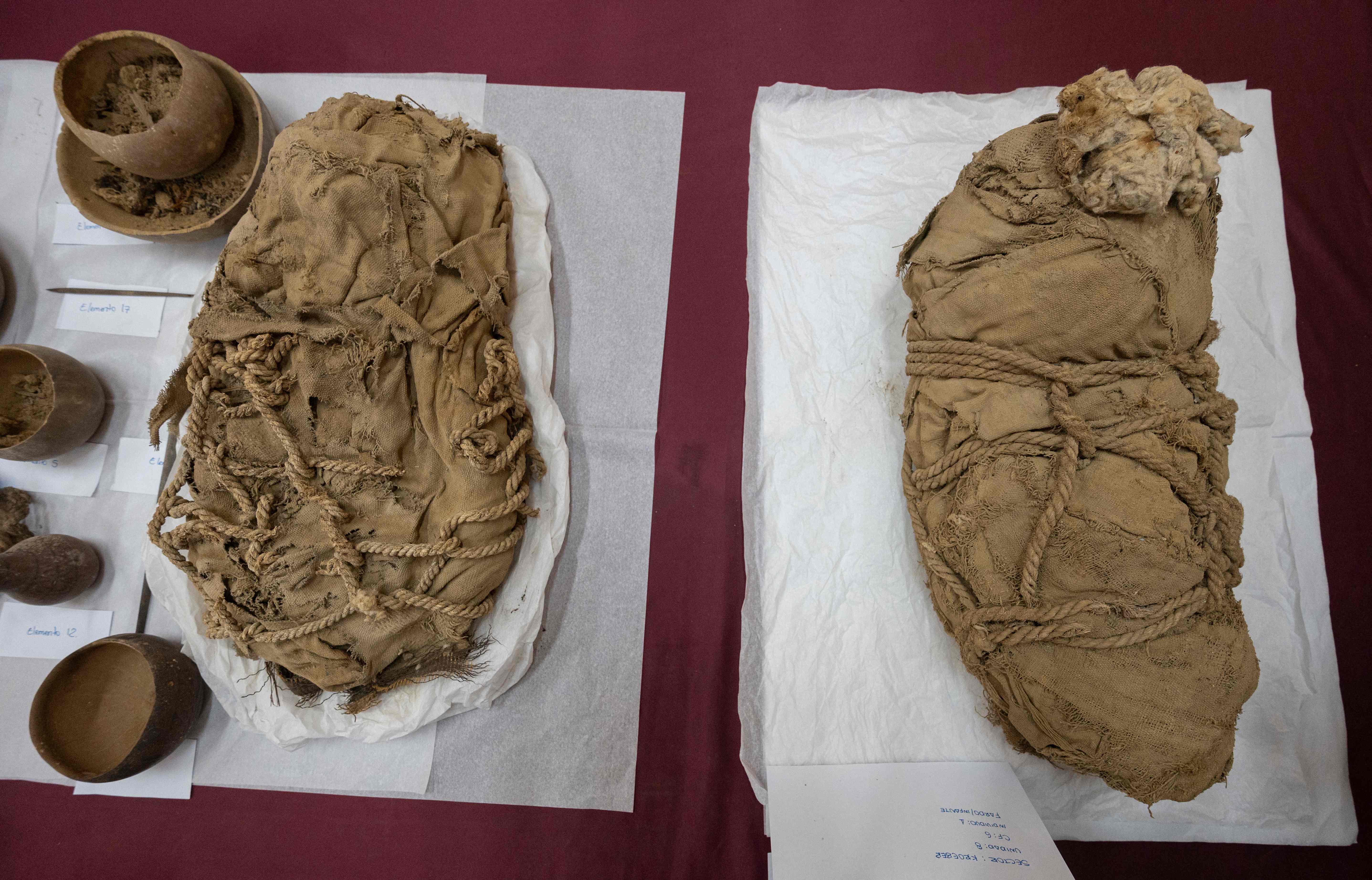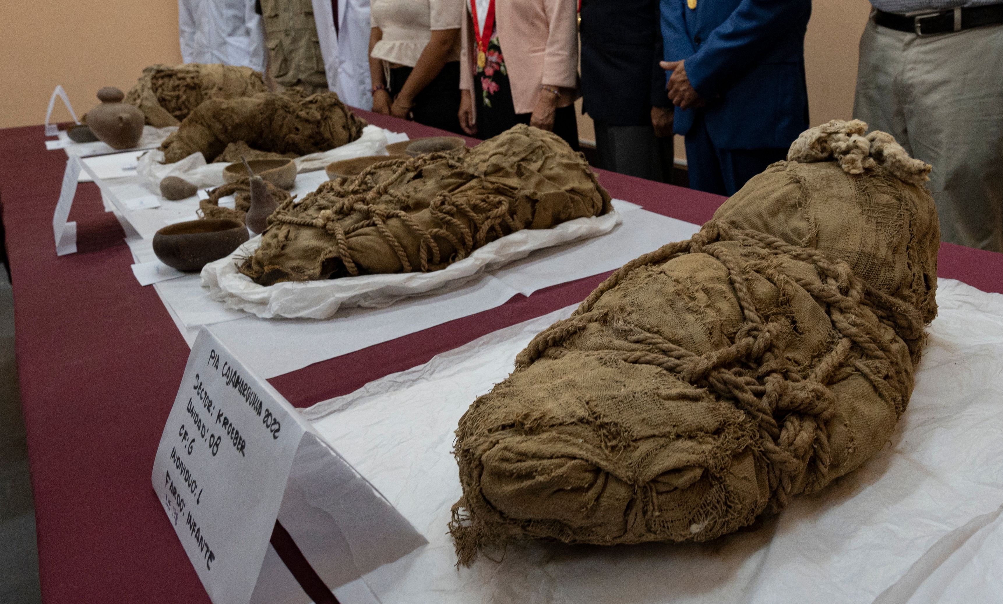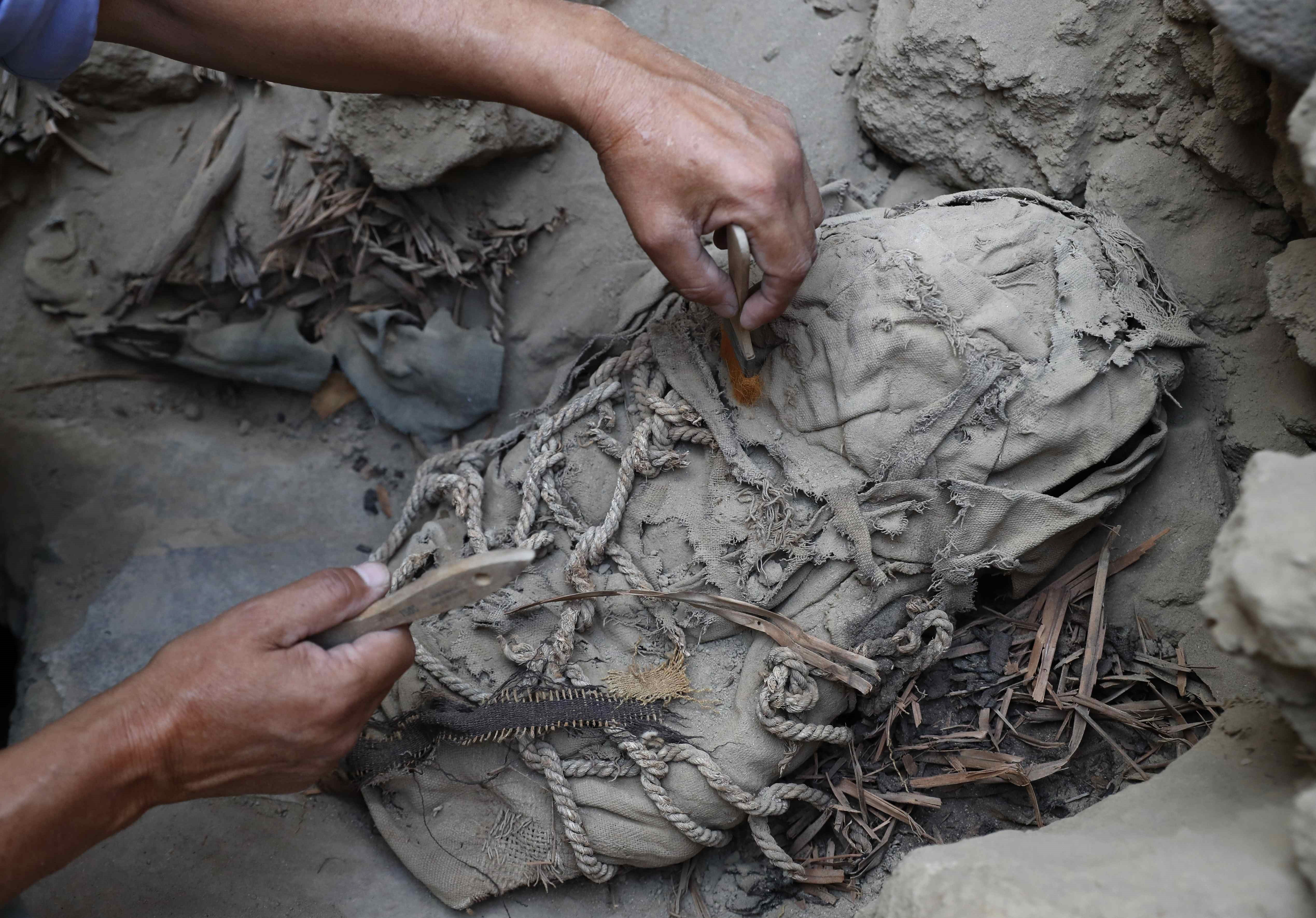 일부는 미라가 되고 일부는 뼈만 남은 상태였으며, 여러 겹의 천으로 싸여 있었다. 유해들이 발굴된 곳은 지난해 11월 밧줄에 묶인 기이한 자세의 미라가 발견된 지하 무덤 바깥이었다.