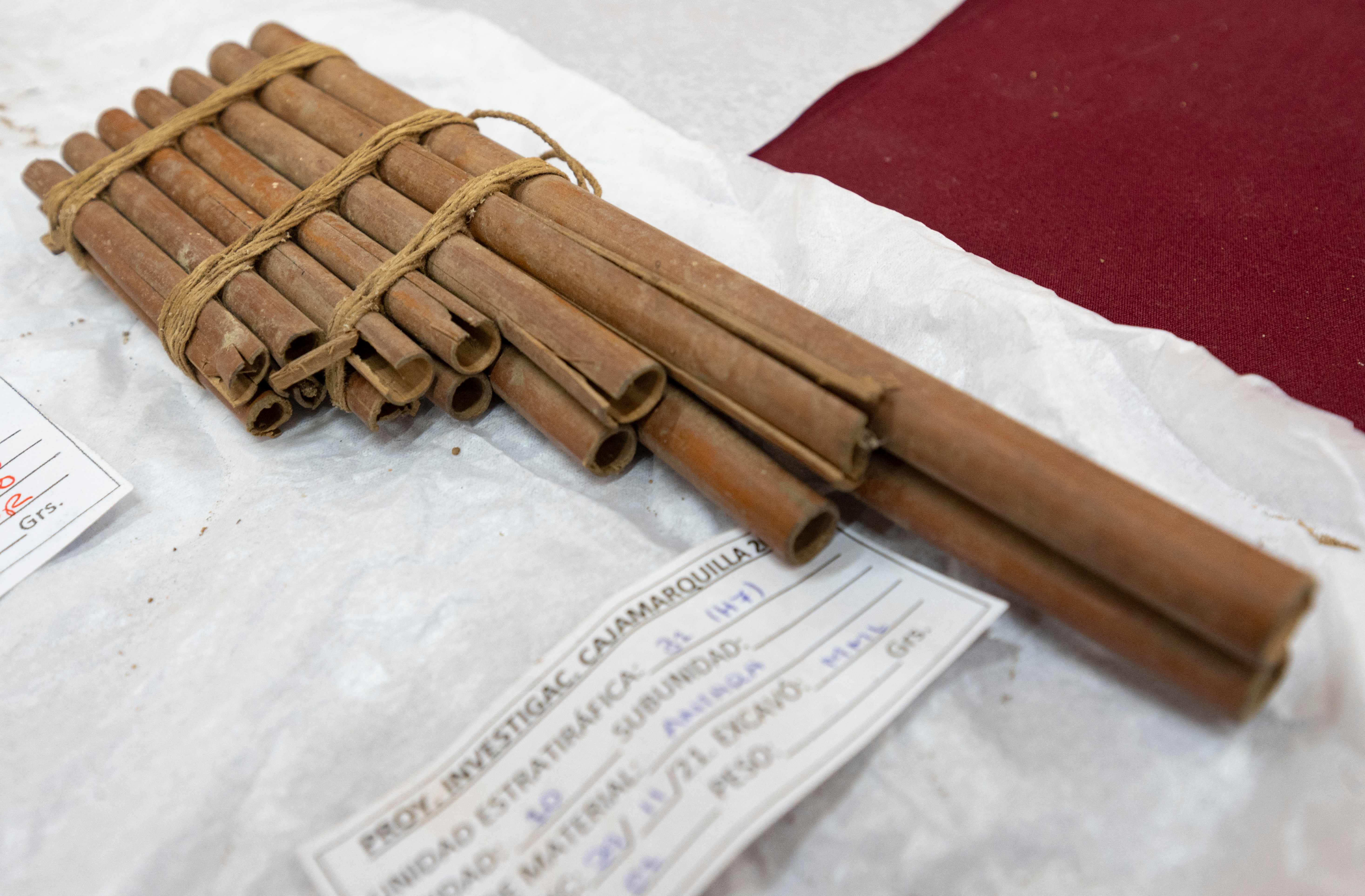 발굴단 일원인 요미라 화만 Yomira Huaman 이라는 여성 고고학도에 의하면 껴묻거리 중에는 잠포나? 참포나? zampona 라 일컫는 플루트 비스무리한 안데스 기원 Andean origin 관악기가 있어, 나무로 만든 대롱들이 있다 한다. 아래 사진이 바로 그 악기인 모양이다. 언뜻 대나무로 보이는데 모르겠다.