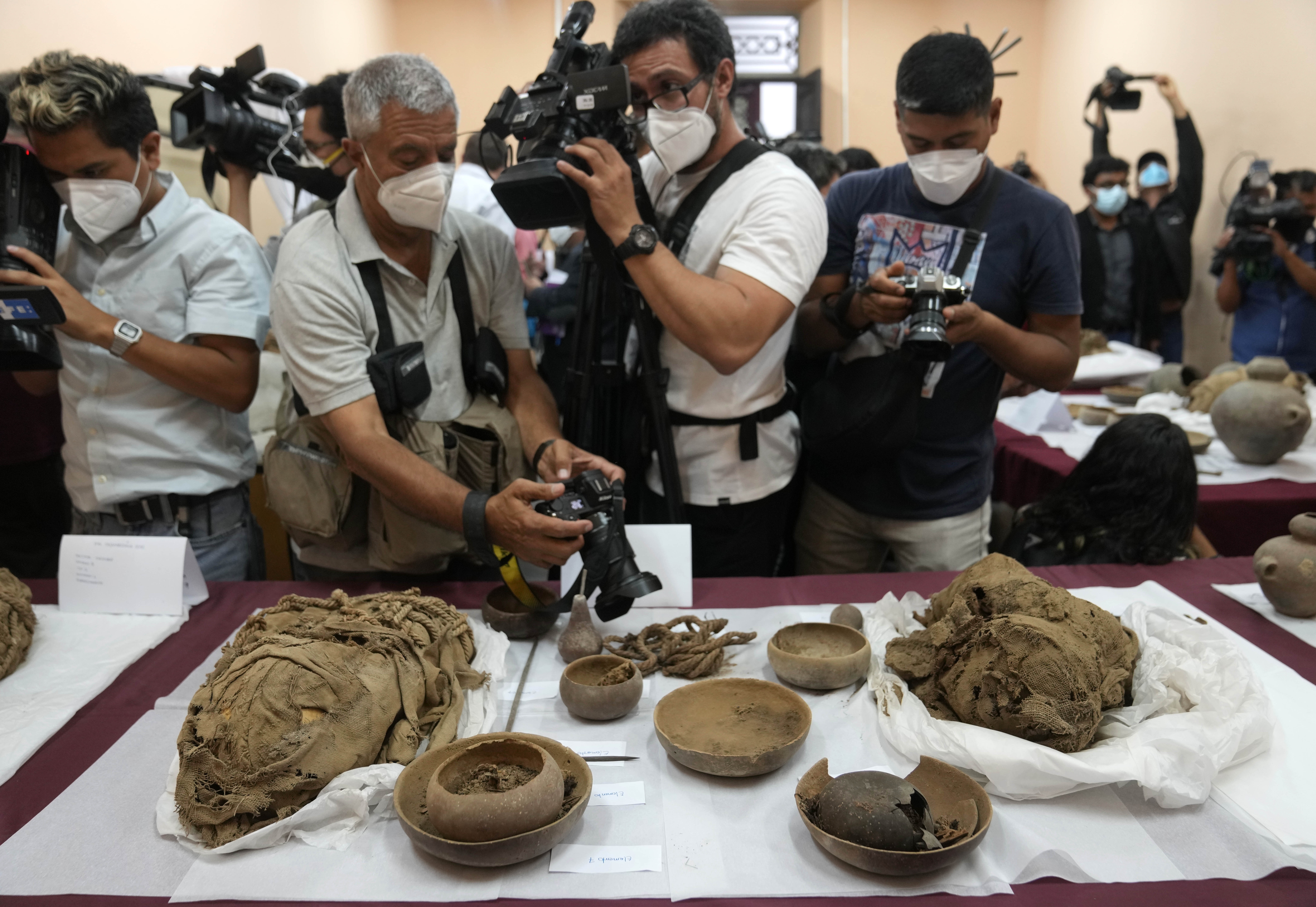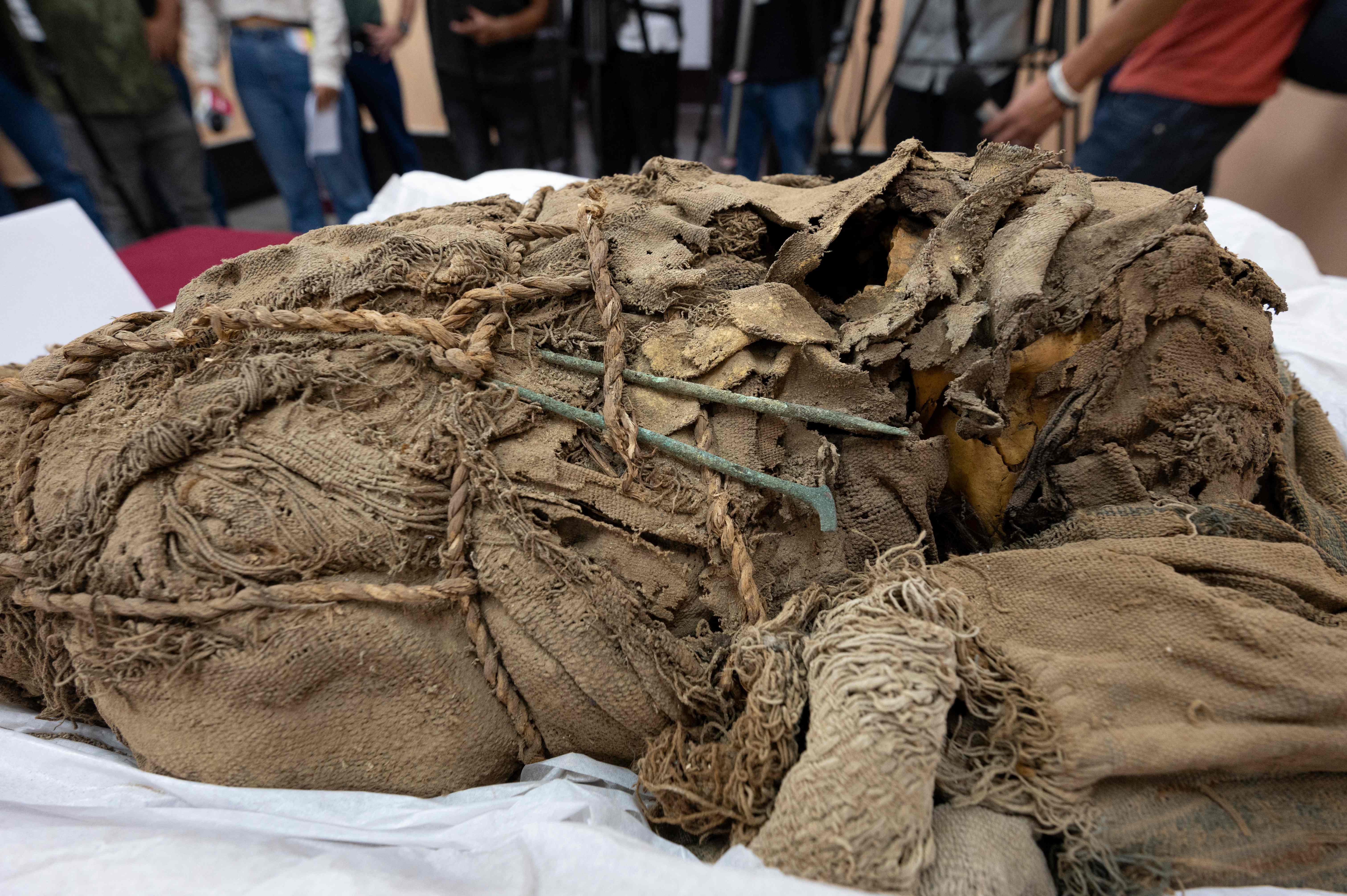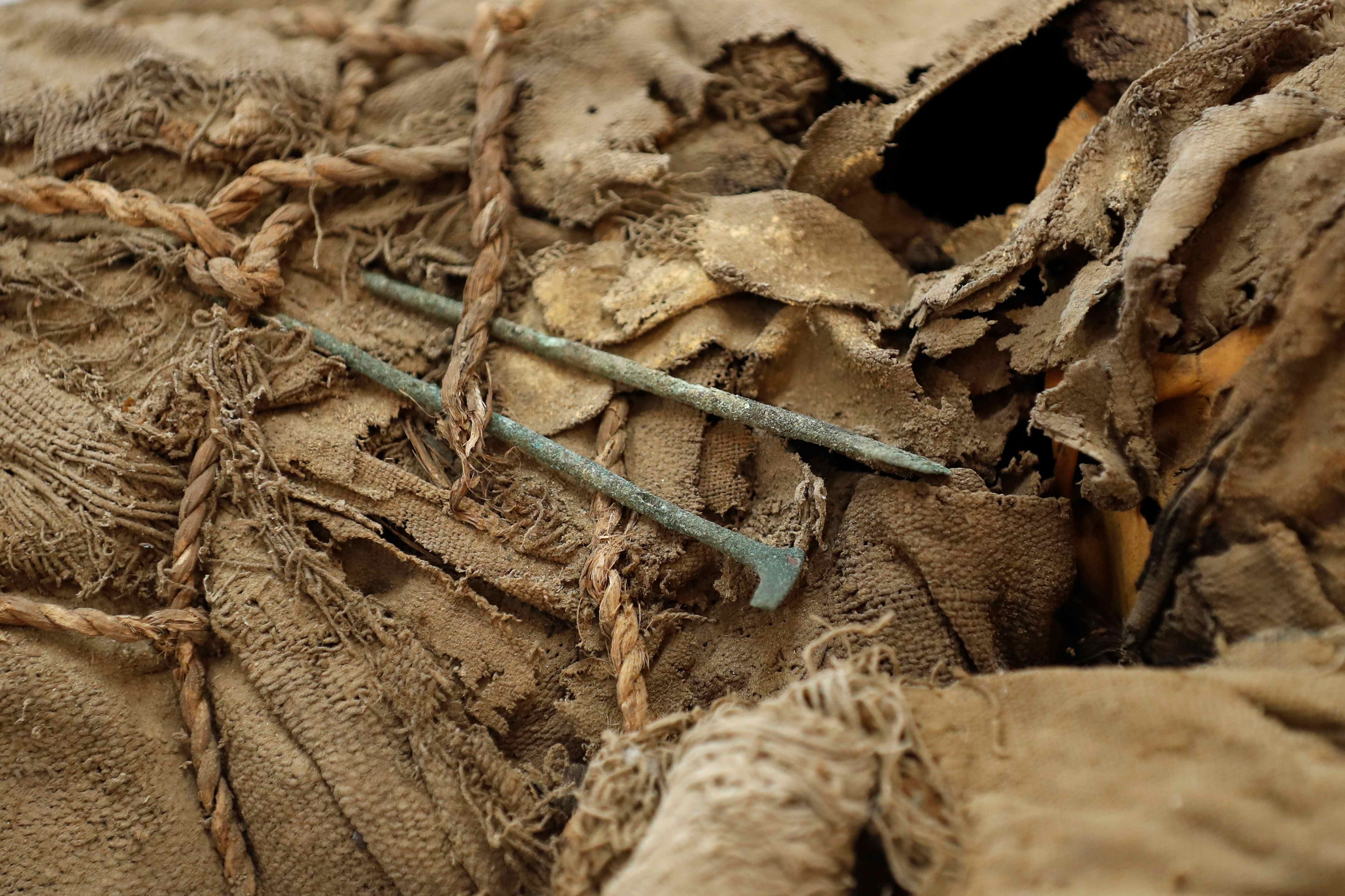 일부는 미라가 되고 일부는 뼈만 남은 상태였으며, 여러 겹의 천으로 싸여 있었다. 유해들이 발굴된 곳은 지난해 11월 밧줄에 묶인 기이한 자세의 미라가 발견된 지하 무덤 바깥이었다.