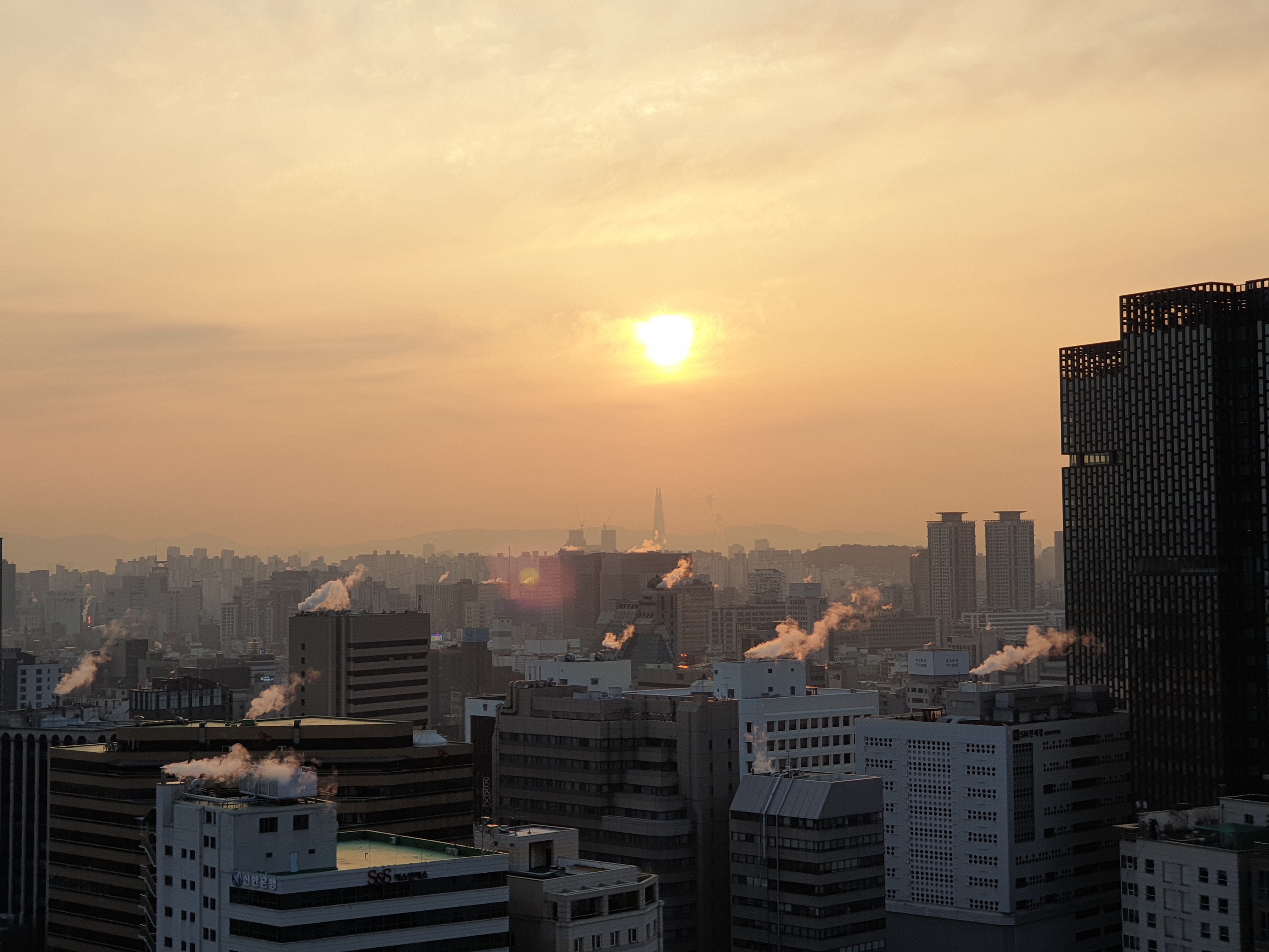구녕에다 제2롯데월드 꼭대기로 스멀스멀 기어오르는 해를 집어넣기도 한다.