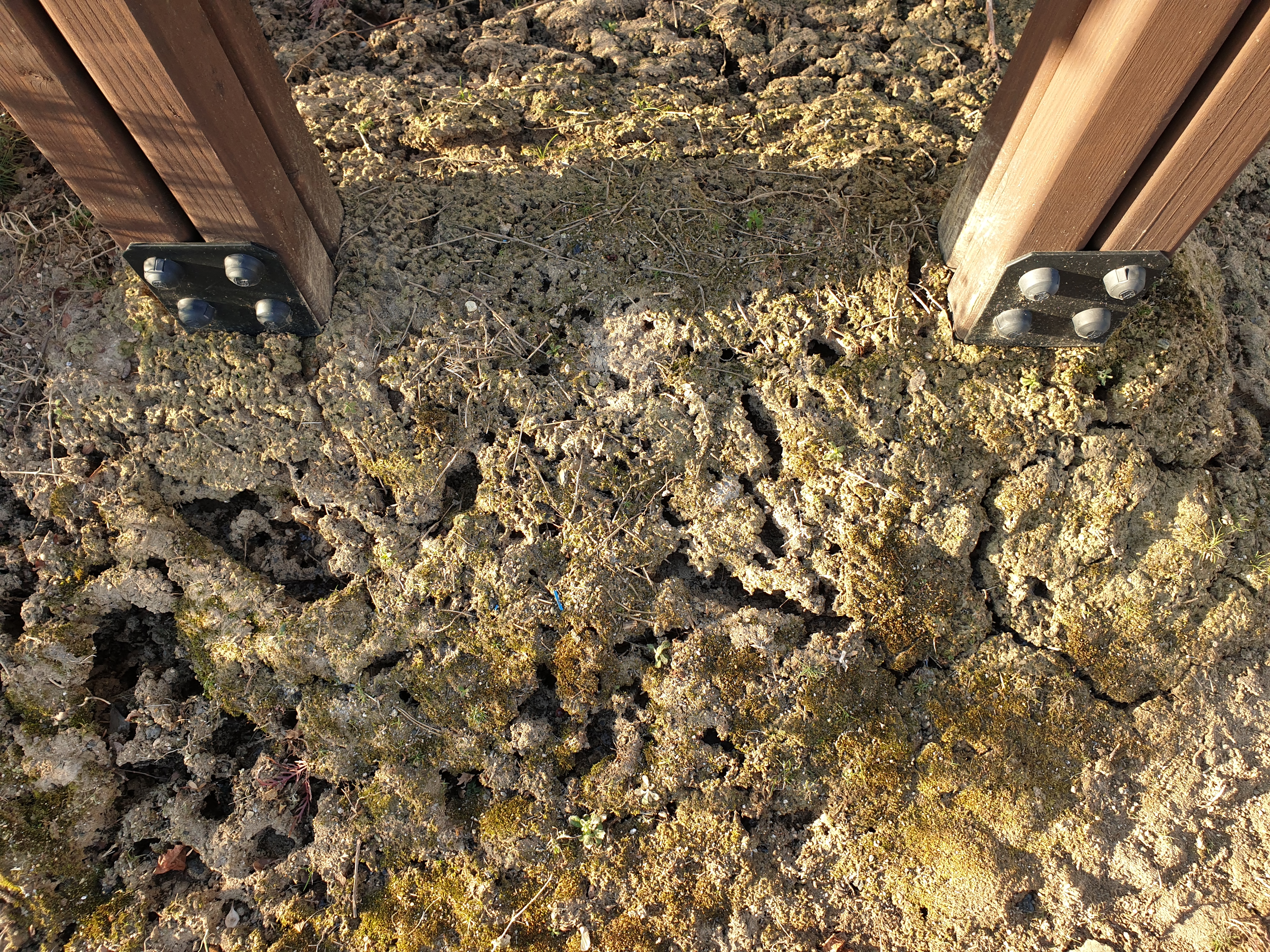 뒤꿈치로 쾅쾅 눌러 얼음 두께로 가늠해 본다.