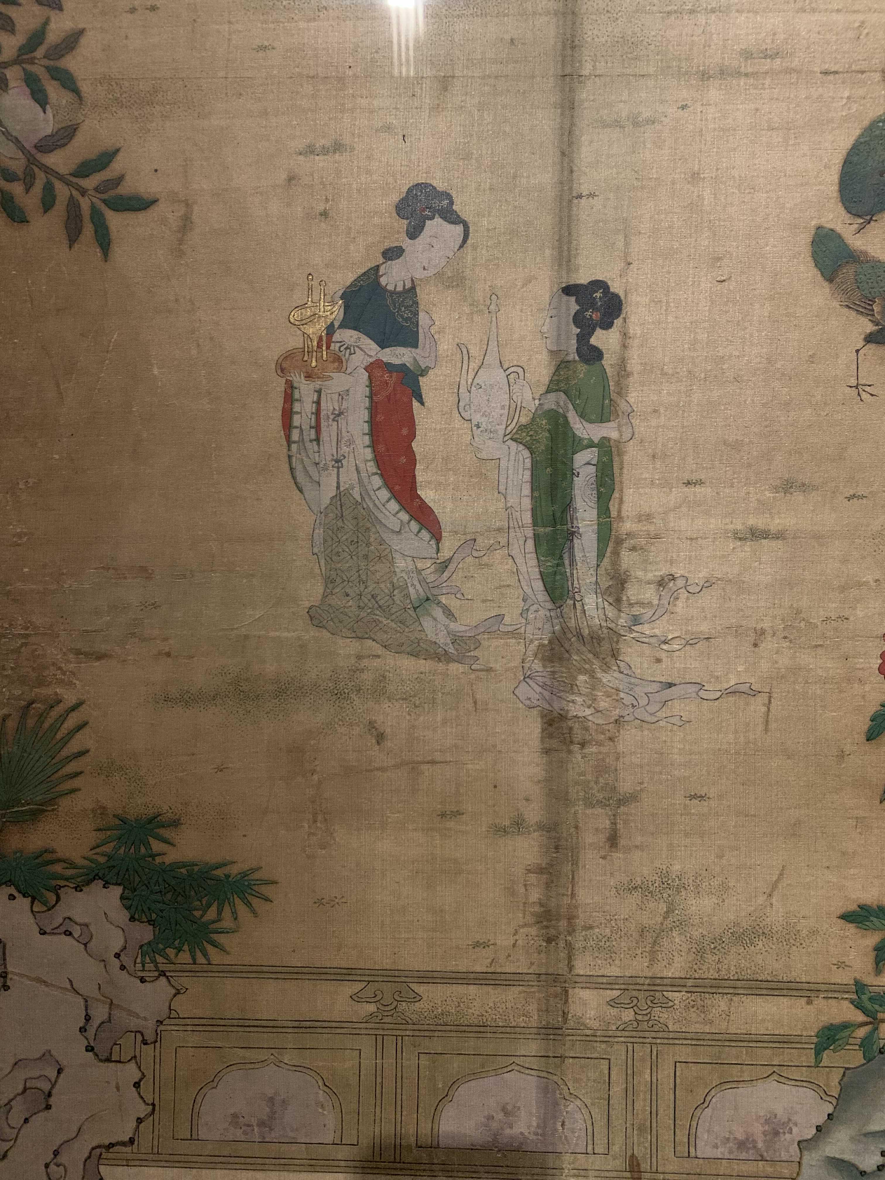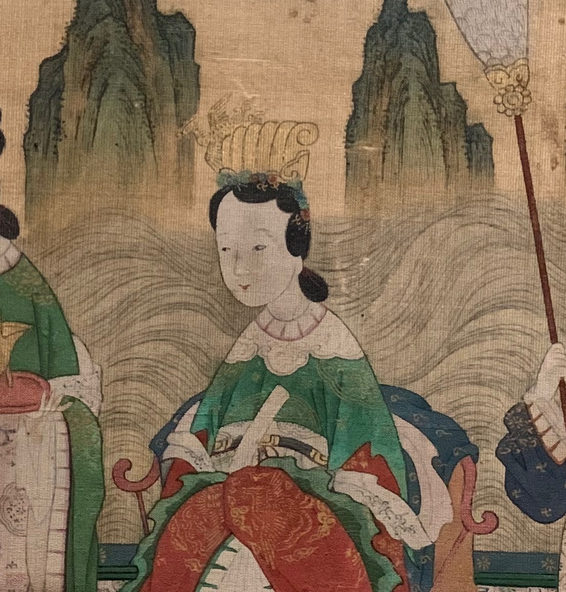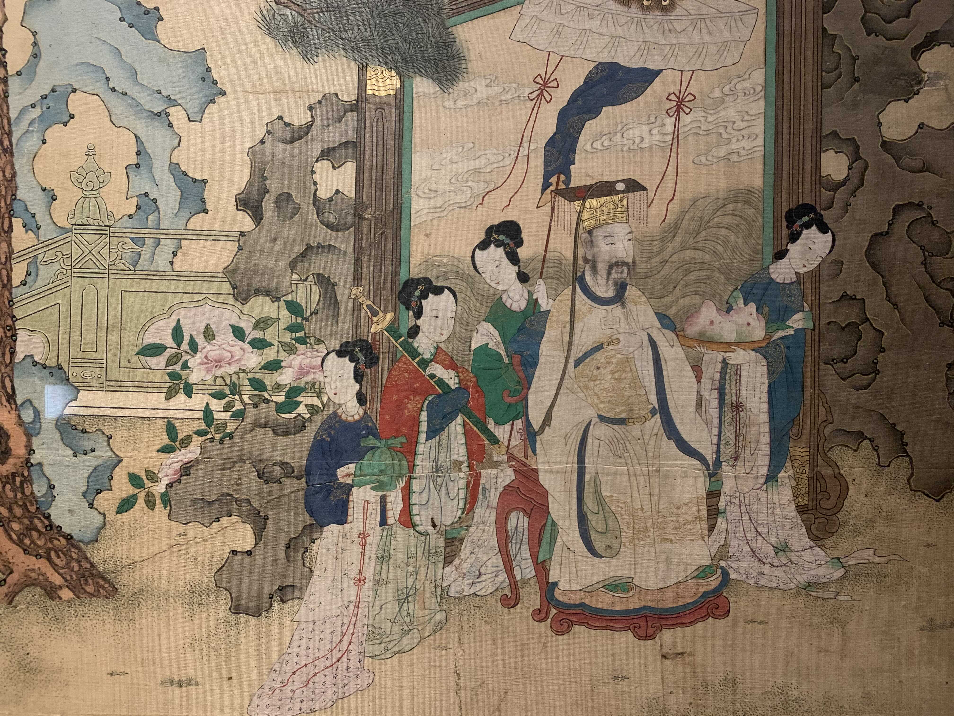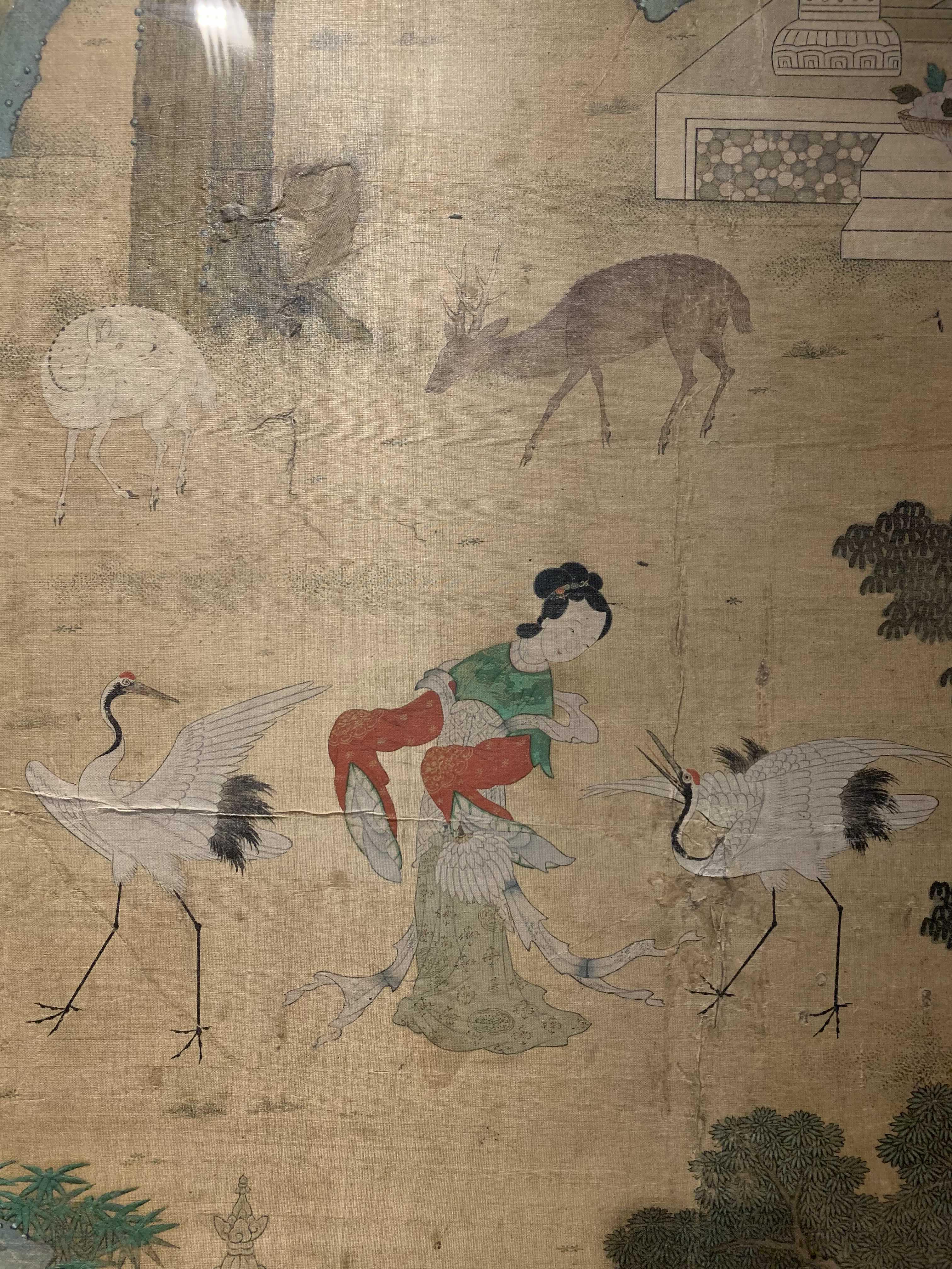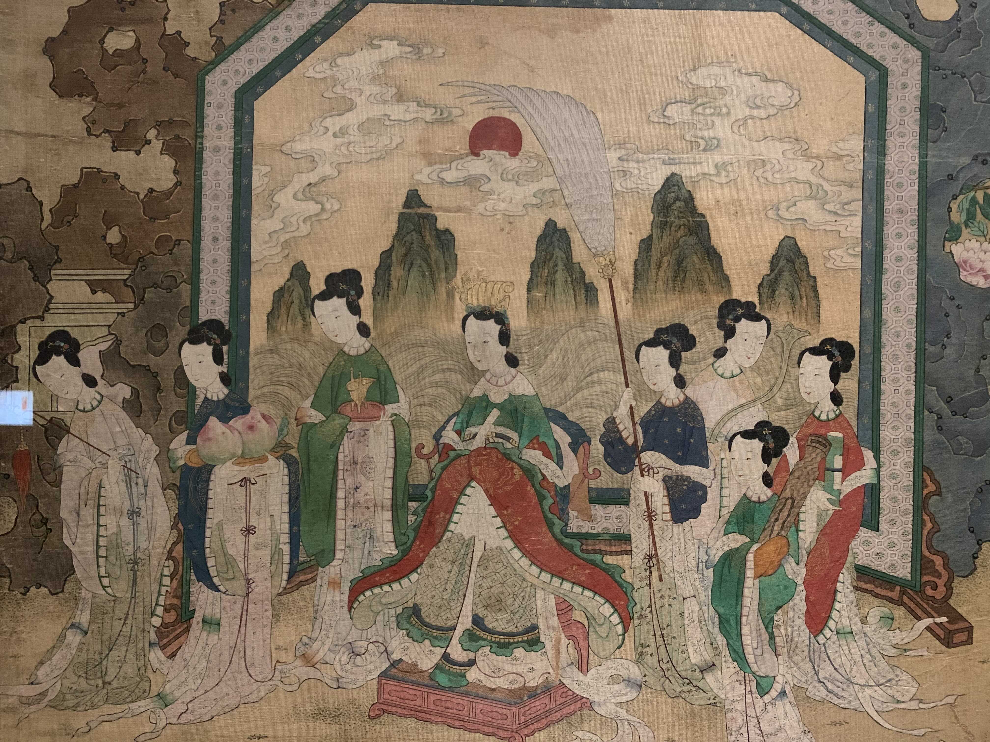 ‘요지연도’는 중국 고대 전설 속의 여신선인 서왕모가 신선들의 땅으로 알려진 곤륜산의 연못인 요지(瑤池)에 주나라 목왕을 초대해 연회를 베푸는 장면을 그린 그림입니다.