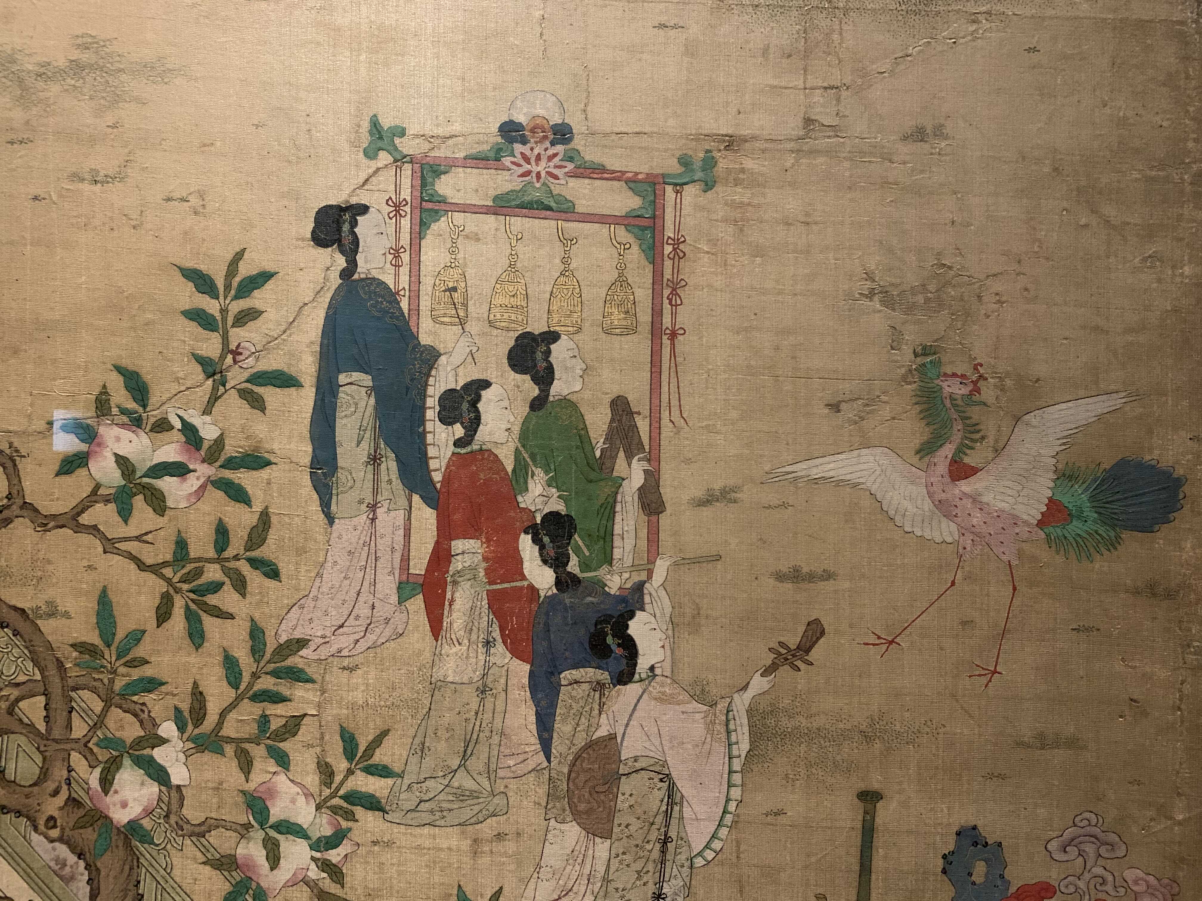 ‘요지연도’는 중국 고대 전설 속의 여신선인 서왕모가 신선들의 땅으로 알려진 곤륜산의 연못인 요지(瑤池)에 주나라 목왕을 초대해 연회를 베푸는 장면을 그린 그림입니다.