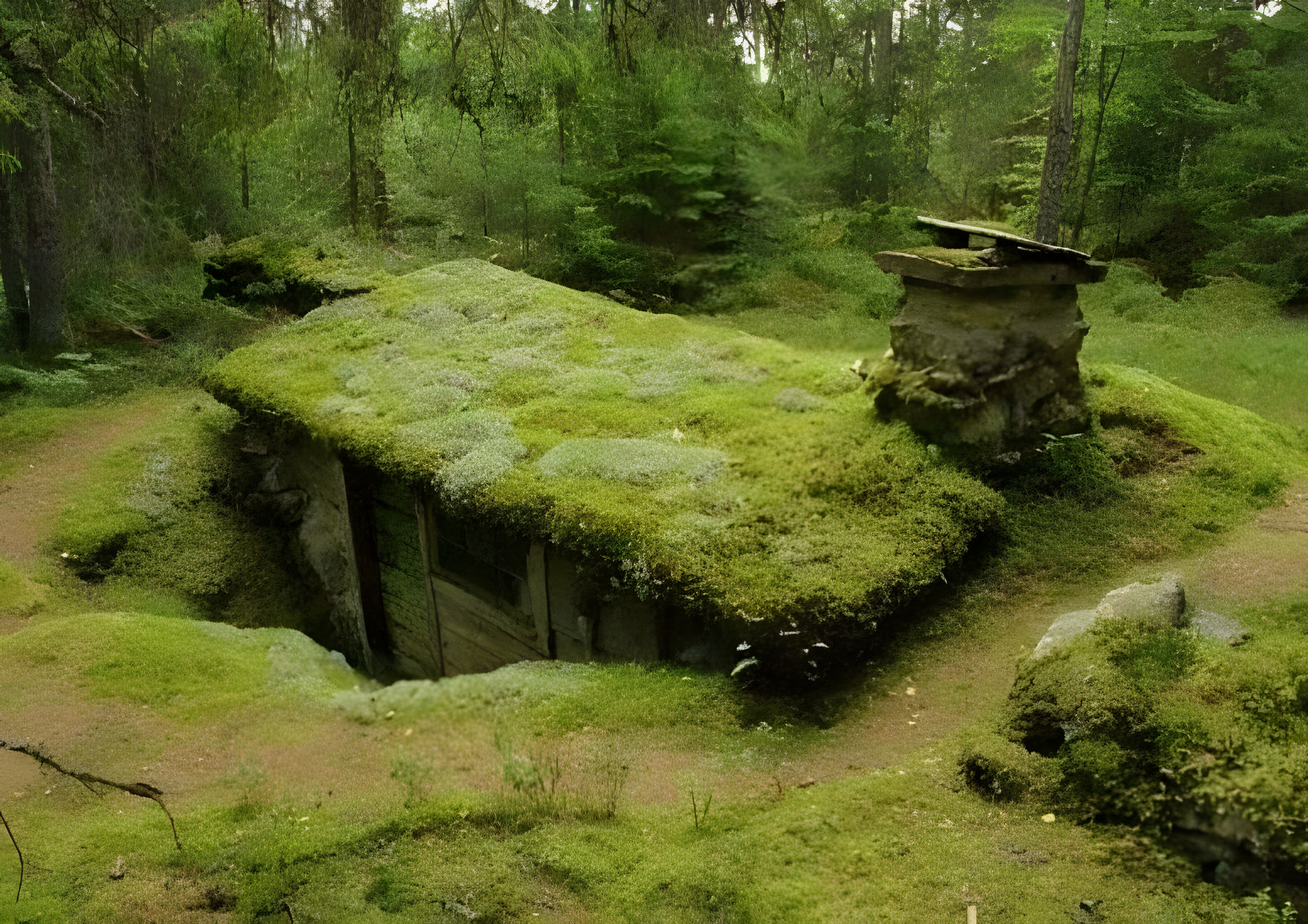 이런 오두막은 보다시피 지표면에는 지붕 정도만 살짝 노출된다.
