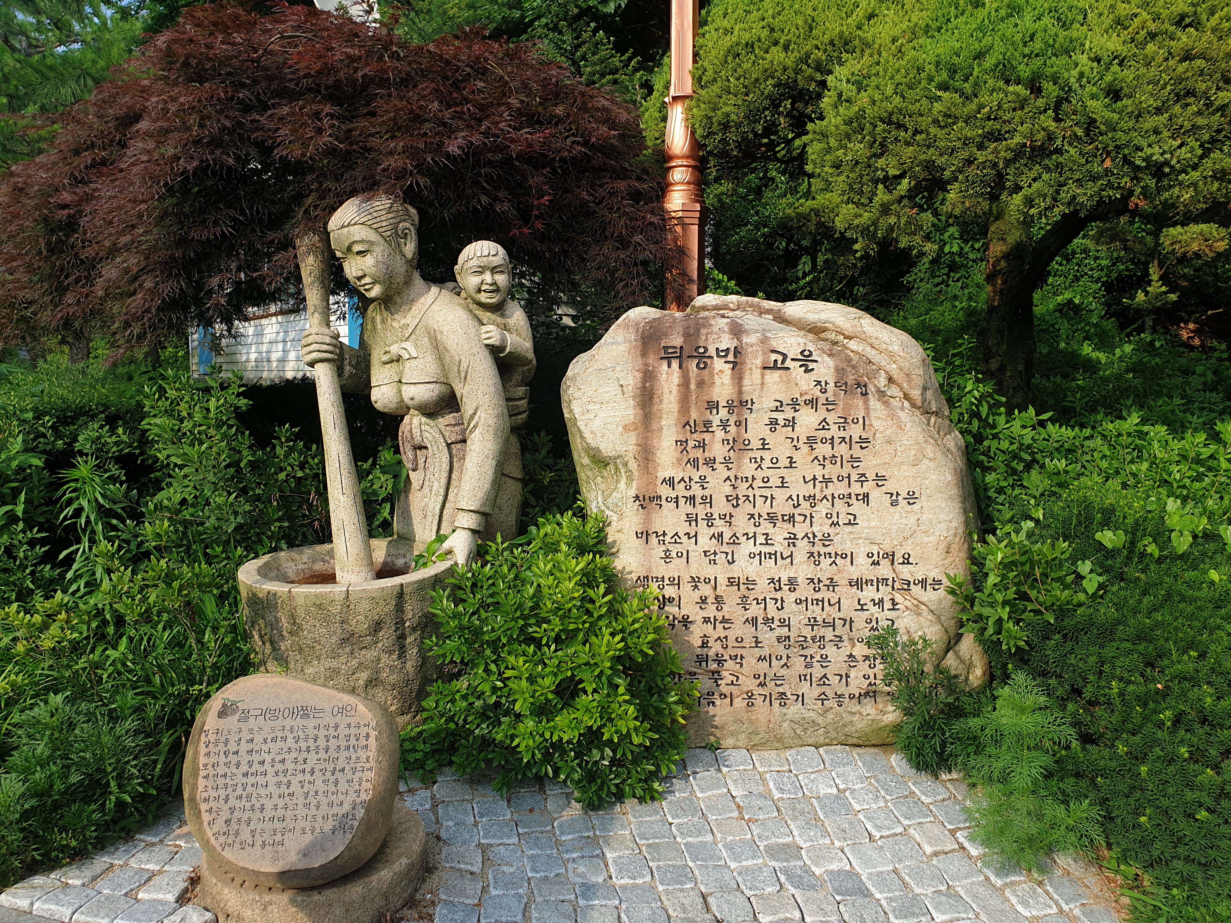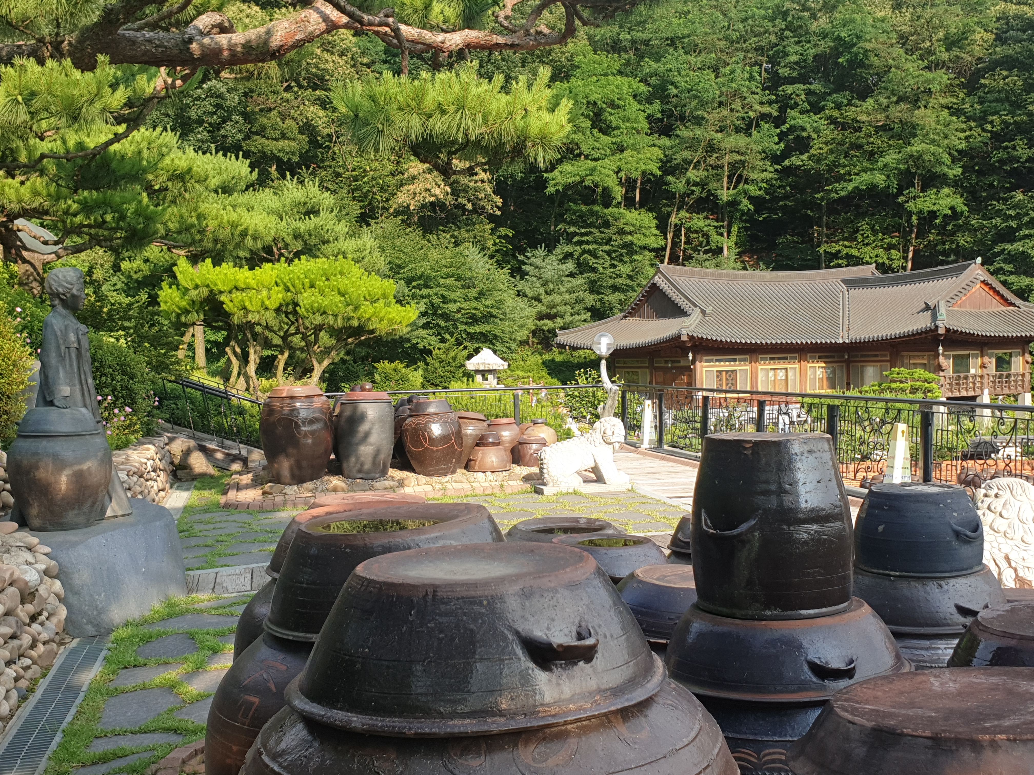 운주산 기슭에 똬리를 튼 이곳에서 의외인 점은 첫째 이름을 뒤웅박이라 했지만 뒤웅박은 온데간데 없고 대신 장독대가 특화한 곳이며 둘째 사립이며 셋째 장류박물관과 실제 장이 발표하는 장독대 시설, 그리고 그에 특화한 음식점이 삼위일체를 이룬 묘한 문화시설이라는 점이 이채롭다.