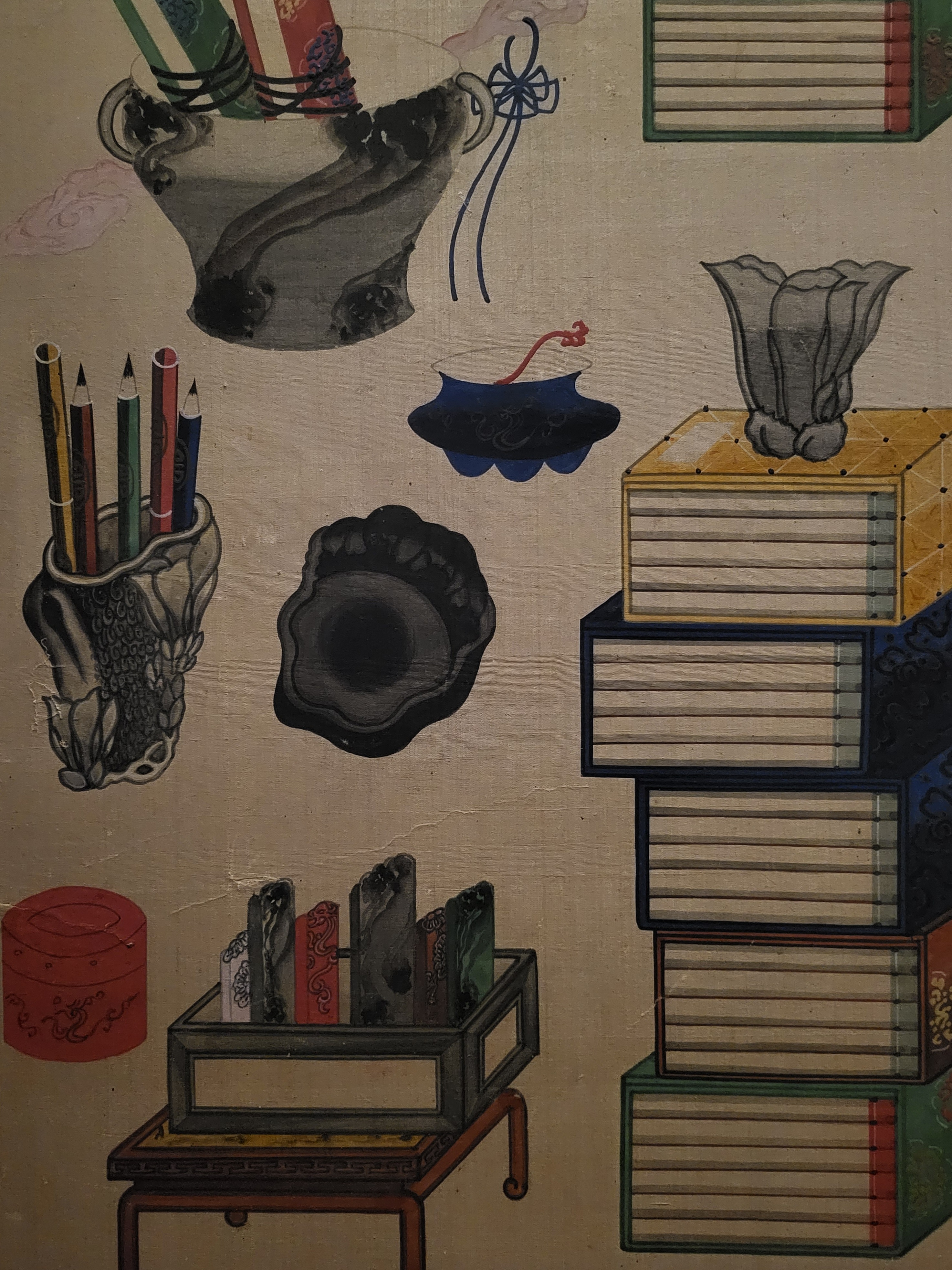 These curiosities and auspicious items exhibited not only the intellectual and cultural tastes of the court but cheir worldly aspirations as well.