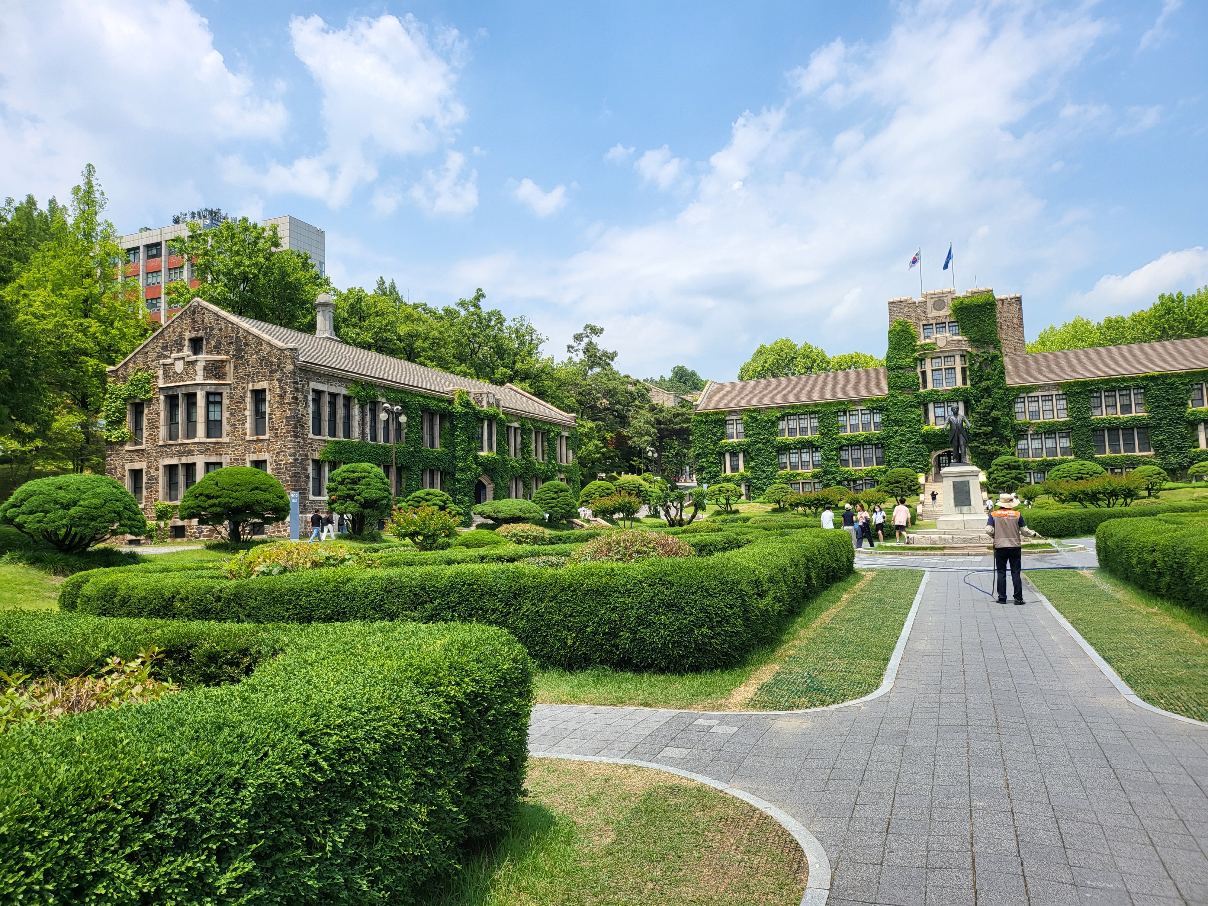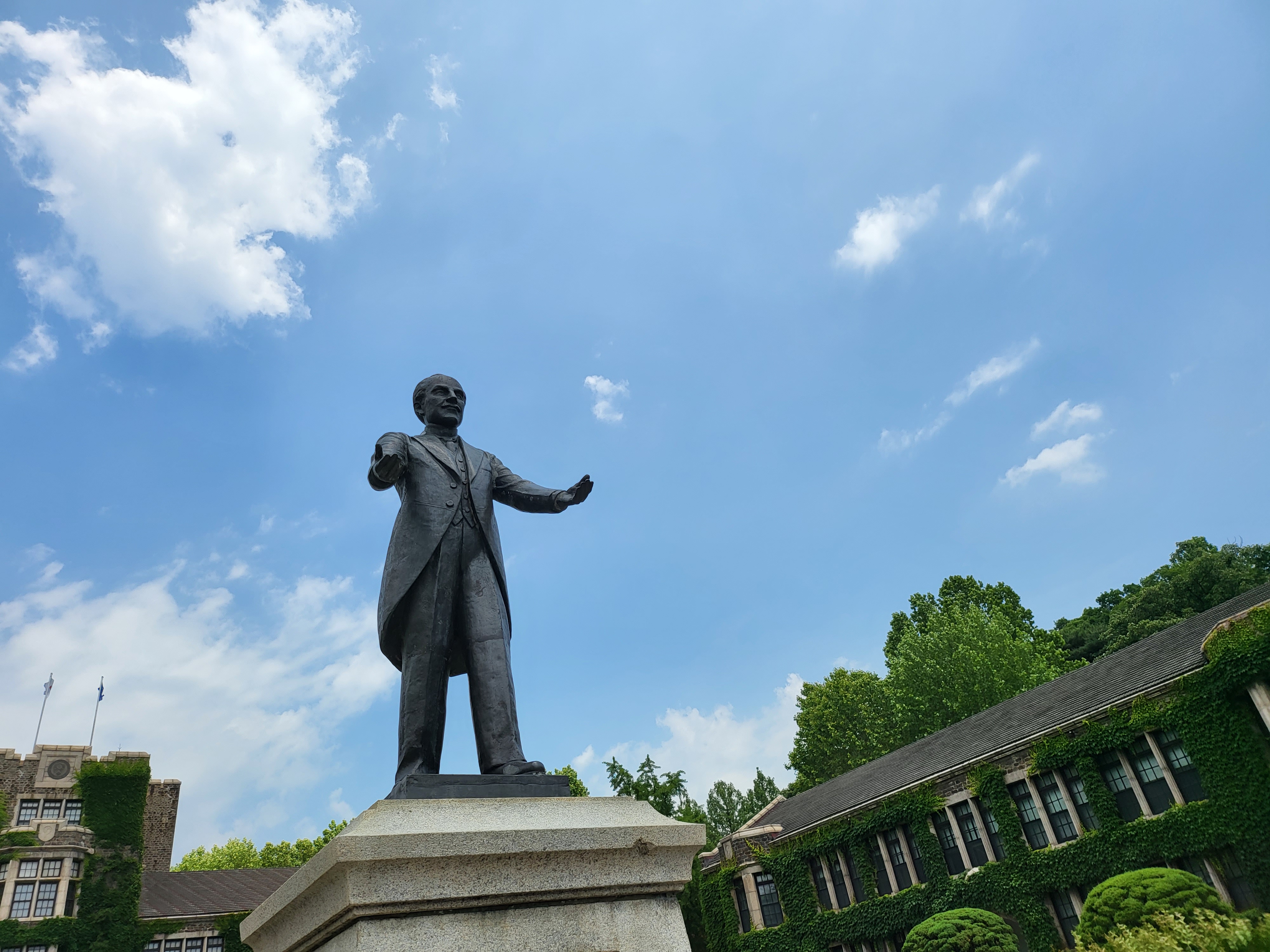 처녀 셋인가 봐야 날아간다는 독수리상을 필두로 연세대 역사에서 빼놓을 수 없는 용재 백낙준 박사상을 중앙도서관 앞마당에서 촬영하고는 본관을 향해 직진하며