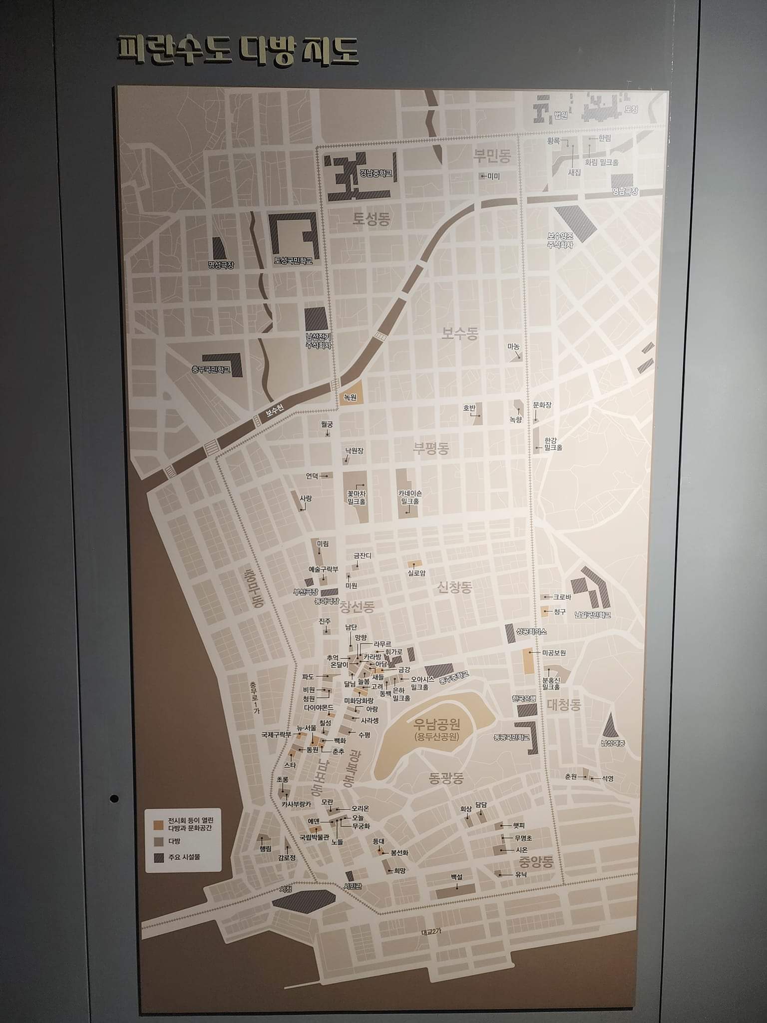 +전쟁 시절 국립박물관 위치가 표시되어 있는 피란수도 다방 지도가 패널로 있는 것이 인상적이었다.