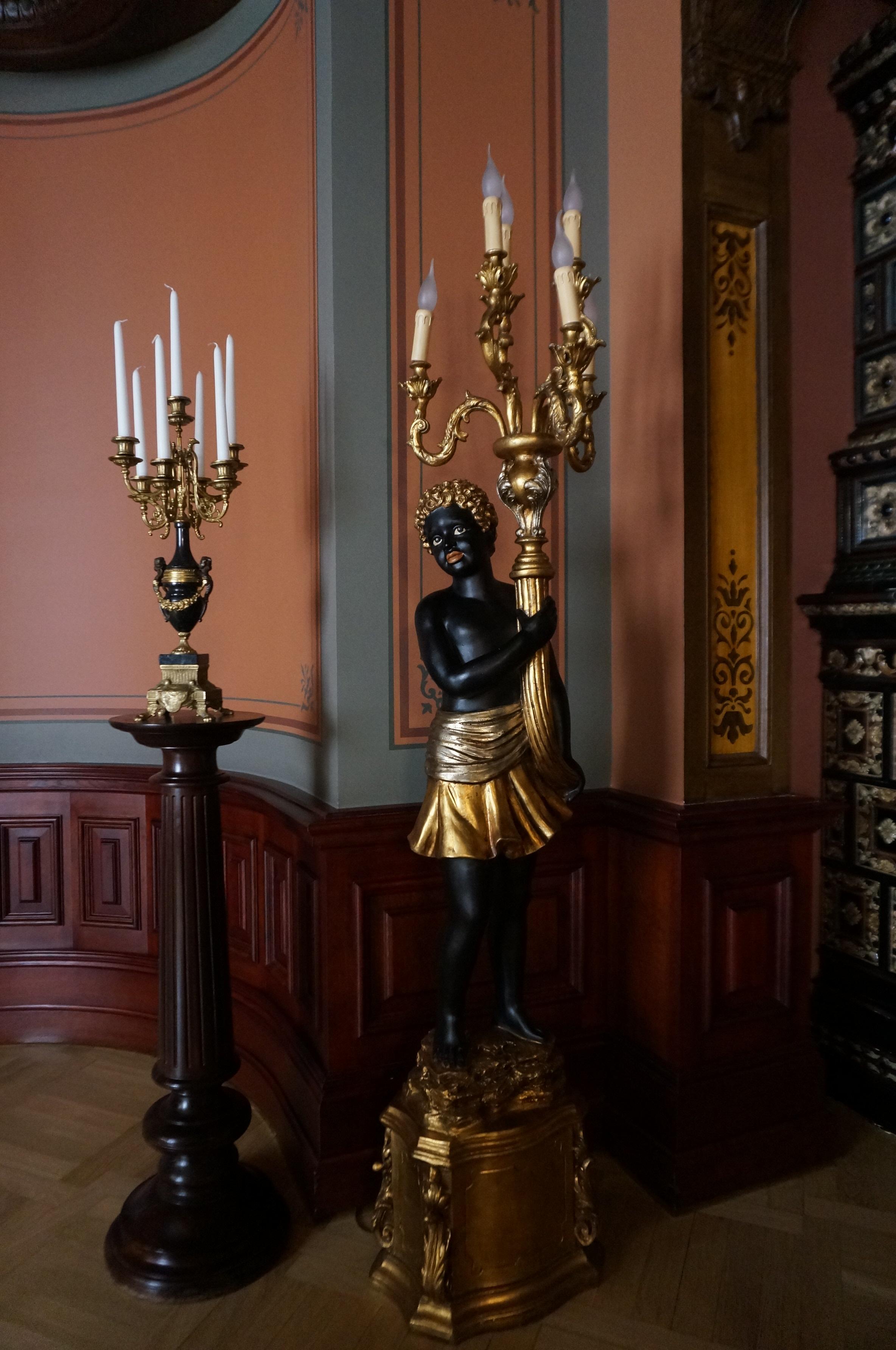 3세기경의 이집트인이었던 Saint Maurice는 중세에 와서 갑자기 흑인으로 묘사되기 시작했고(이유에 대해서는 여러 설이 있다) 이 건물과 검은 머리 형제단 문장에는 중세시기의 묘사대로 표현된 것 뿐.