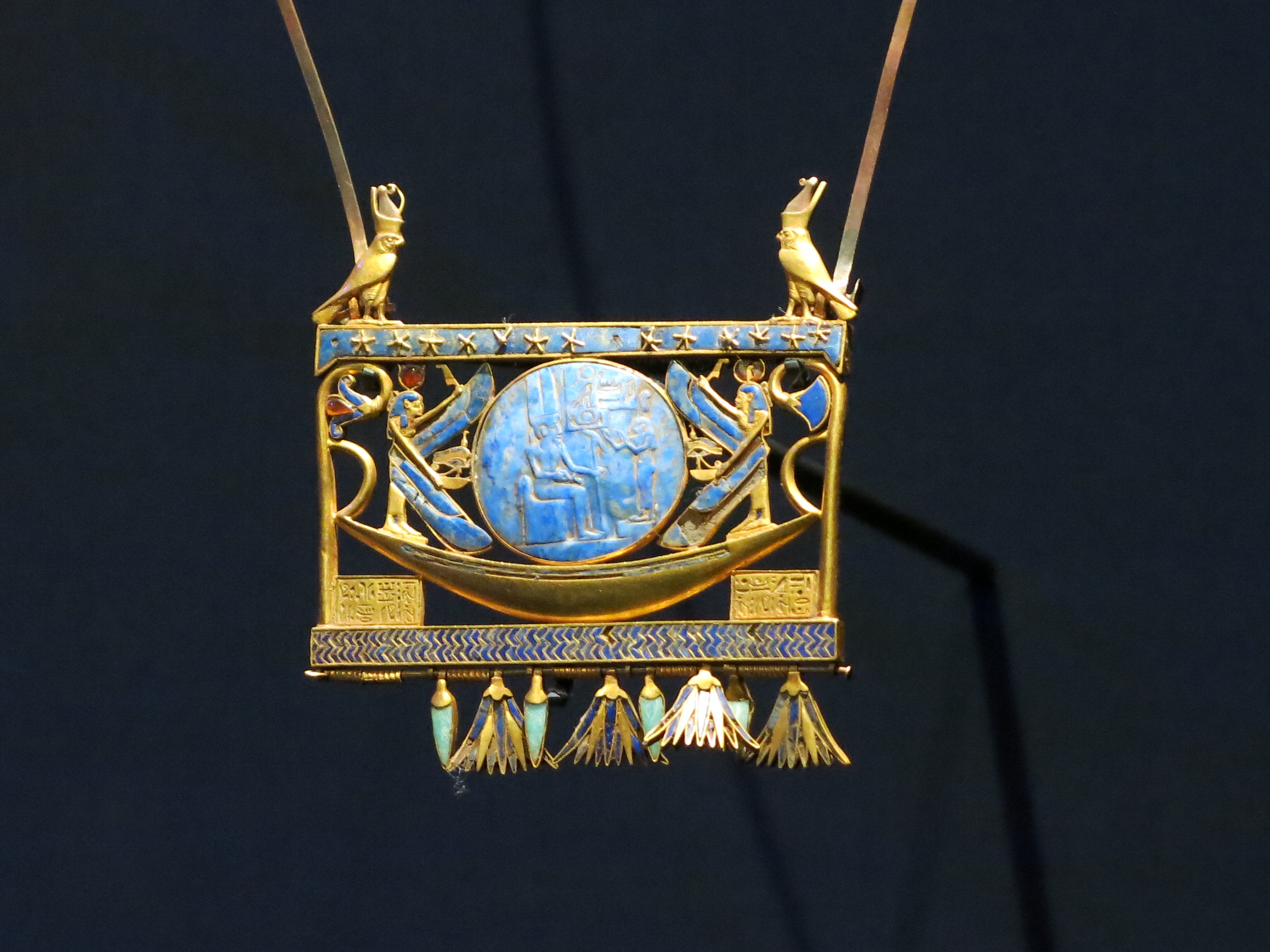 Made of gold and mounted with a lapis lazuli scarab, from tomb - Tanis. Third Intermediate Period, 22nd Dynasty, reign of Shoshenq II, ca. 887 - 885 BC. Now in the Egyptian Museum, Cairo.