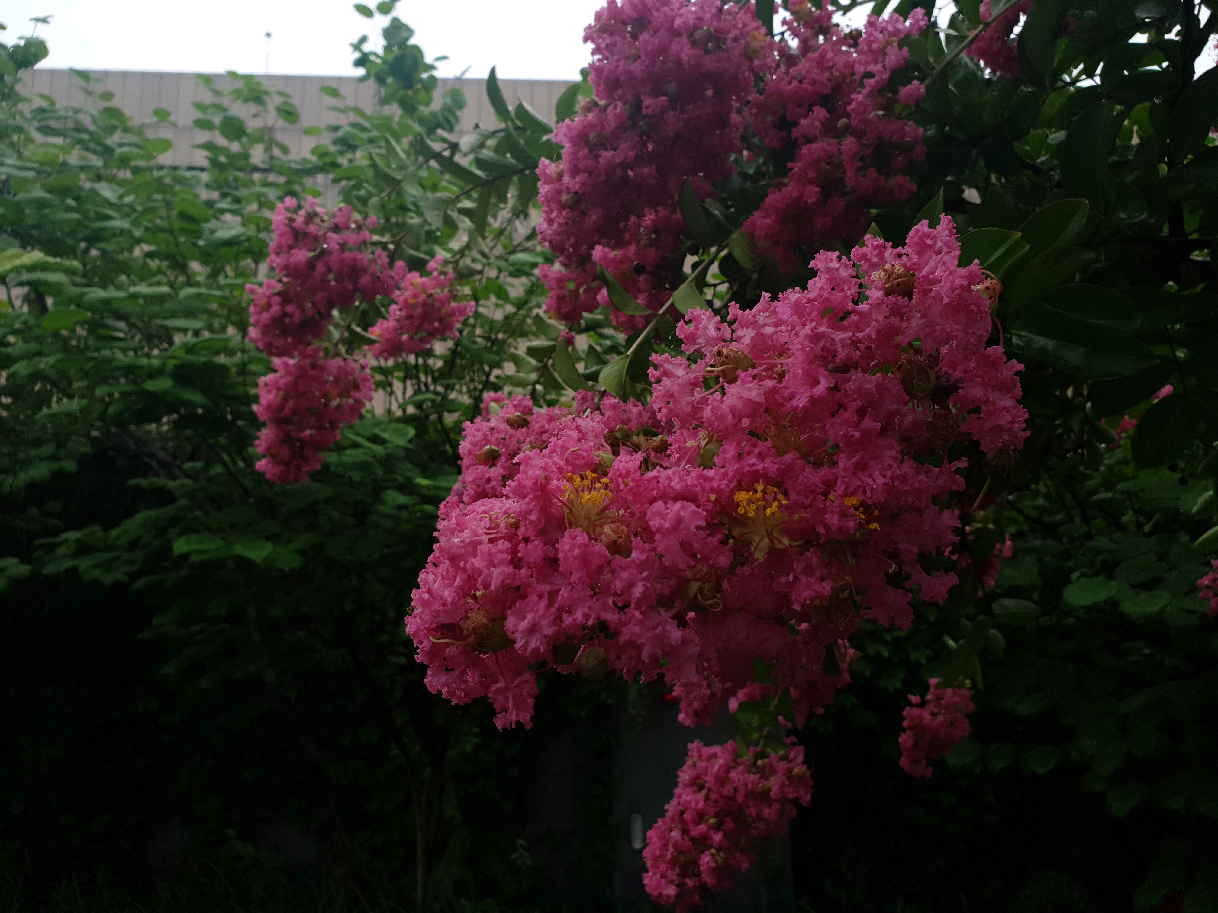 치렁치렁 레게가수 머리 볶은 흑인마냥 잔뜩 물 머금어 오뉴월 소불알맹키로 축축 늘어진 백일홍 한 그루 발견하고선