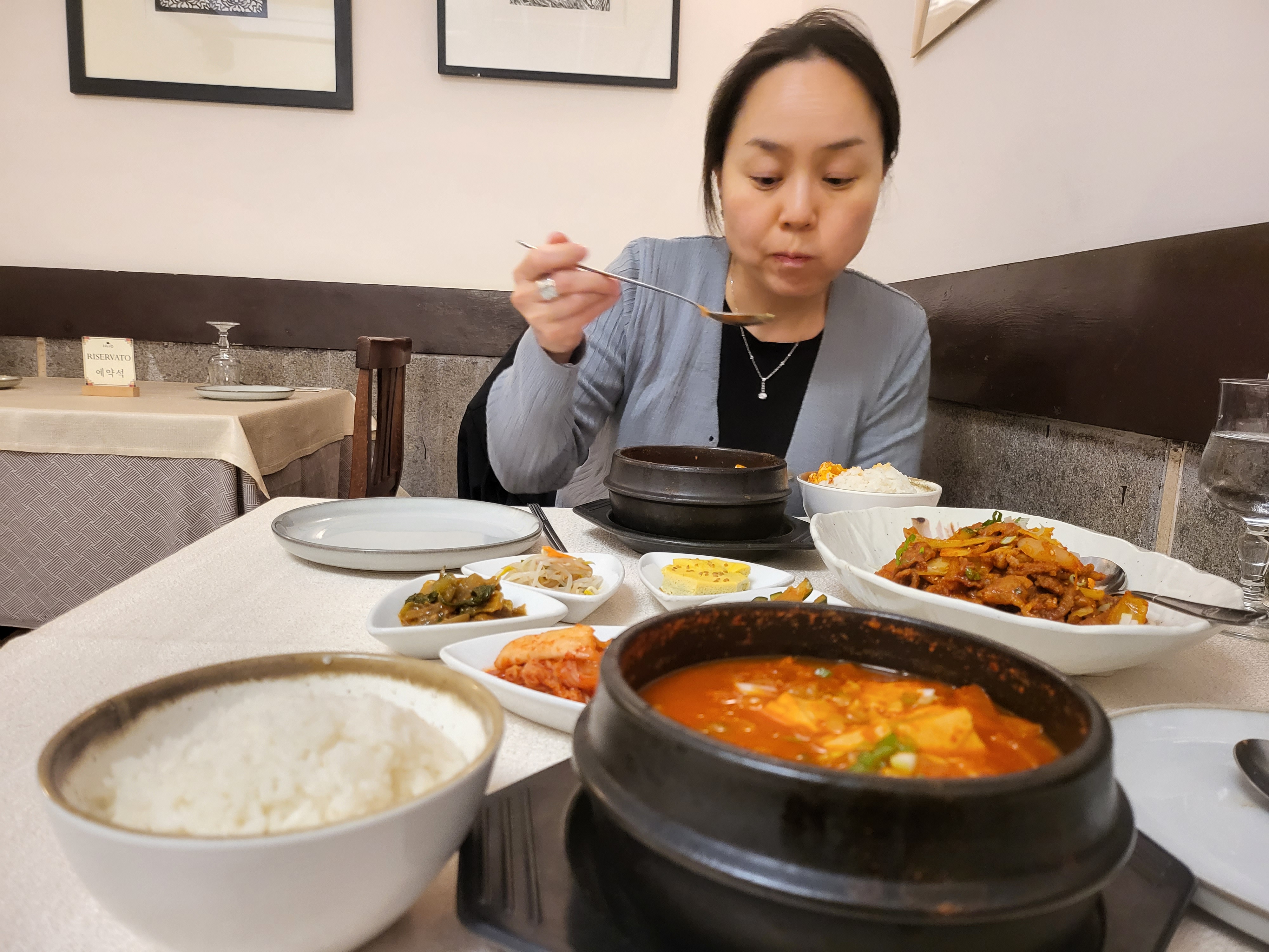 밥 한 번 먹기가 힘들어 겨우 잡은 저녁 한식당 이조에서 방송용 영상 제작 안 하시냐며 굳이 김칫국물 떠먹는 쇼컷 장면을 찍는가 하면, 어차피 제가 반대해도 블로그 올리실 텐데, 대신 사진은 사전 검열하게 해 주세요 하면서, 폰을 뺏어가 사진들을 검색하며, 이런저런 사진들을 지워버린다.