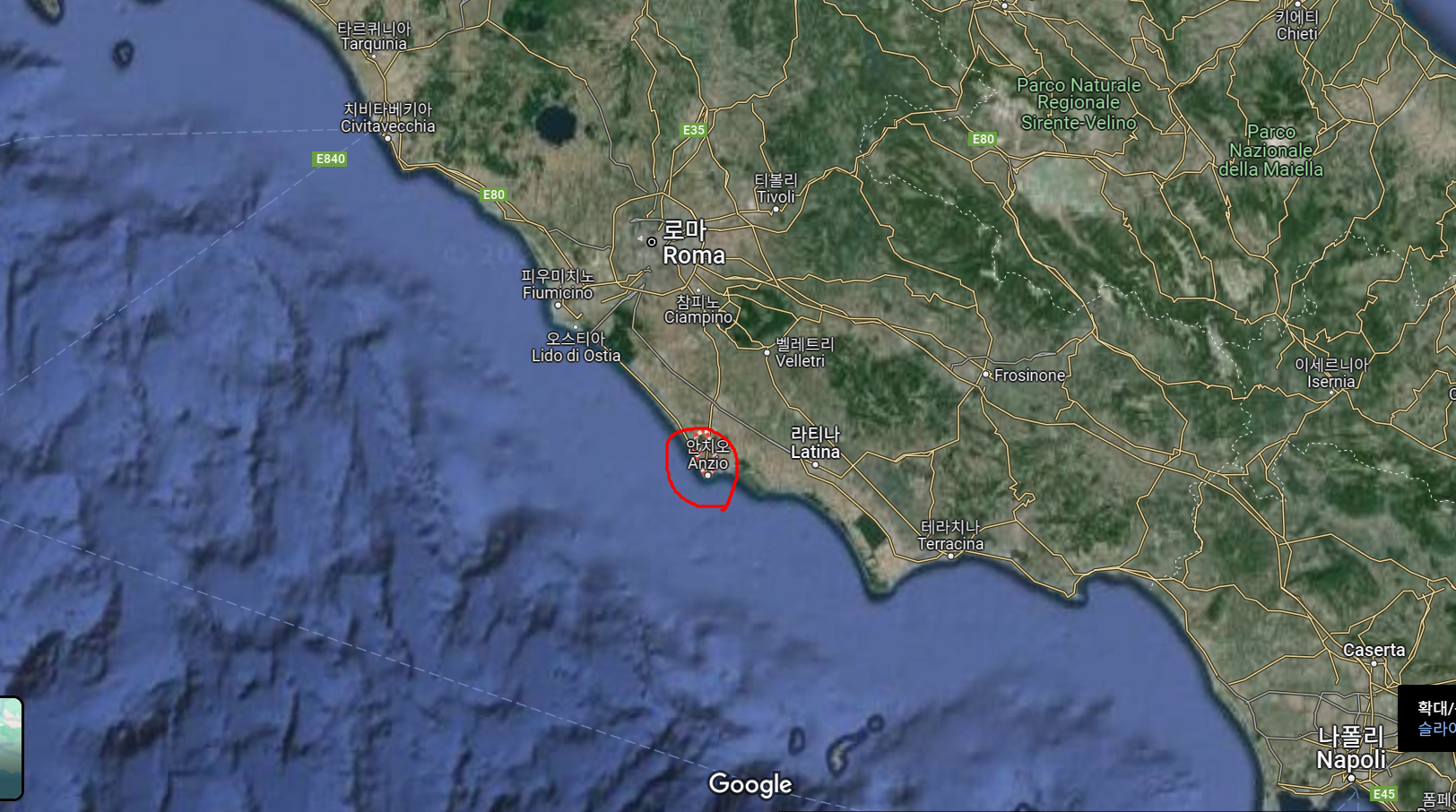 그가 머물렀다는 안티움은 지금의 안치오Anzio 라는 데라 그 위치는 아래와 같다.