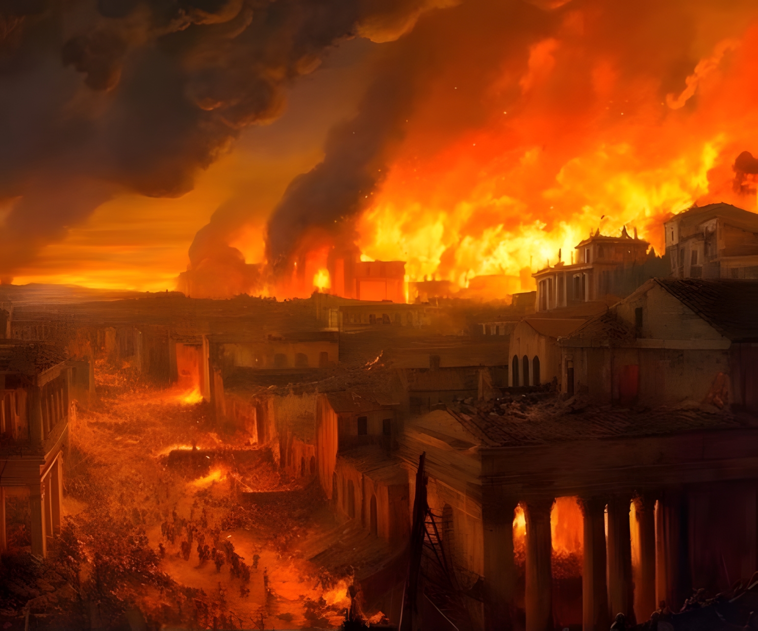 서기 64년 7월, 로마대화재가 일어나 로마의 모든 것을 잿더미로 만들었다.