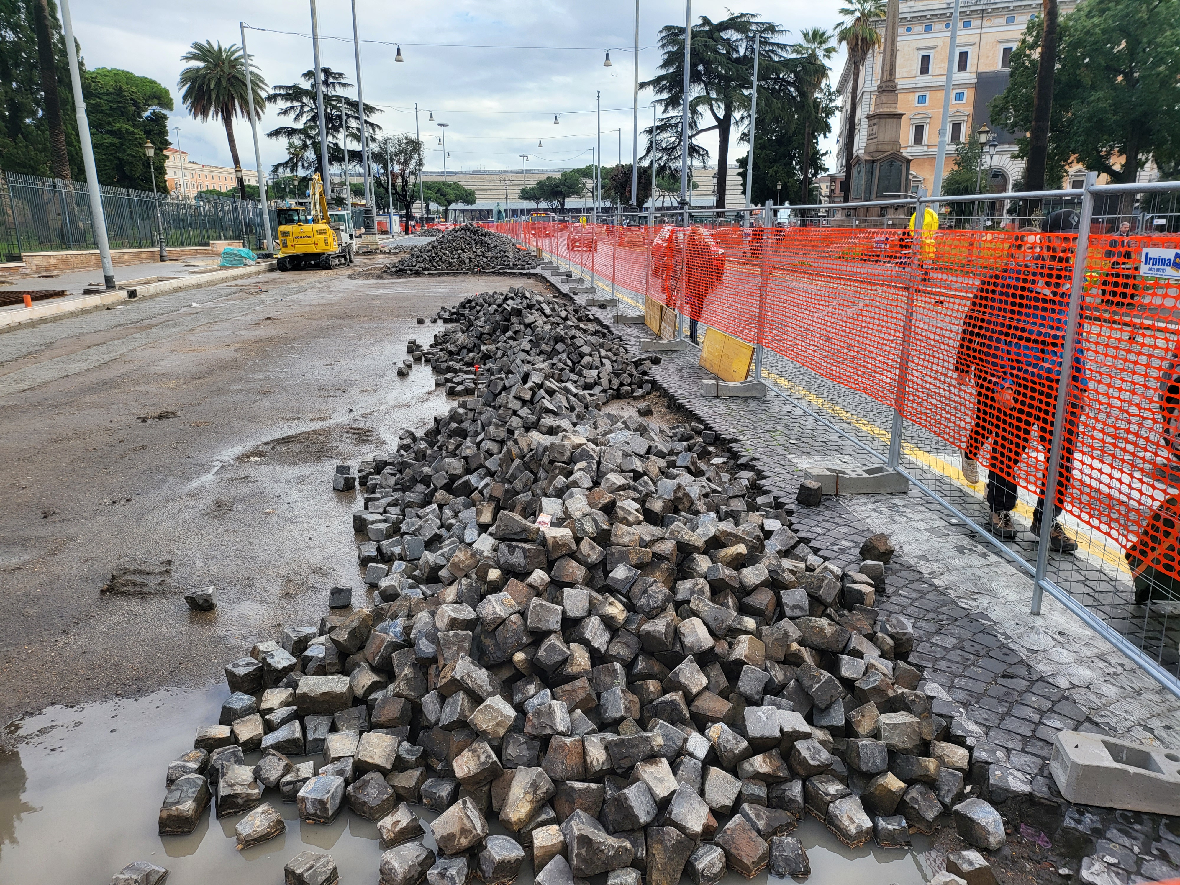 앞 사진은 레푸블리카 광장에서 테르미니역으로 이어지는 구간을 공사하는 장면인데, 그냥 걷어내고 아스팔트 깔고 말지 뭘 또 번거롭게 이리 하는지 모르겠지만, 양태 보면 새로 저 보도블럭을 깔려는 장면인 듯한 느낌을 받았다.