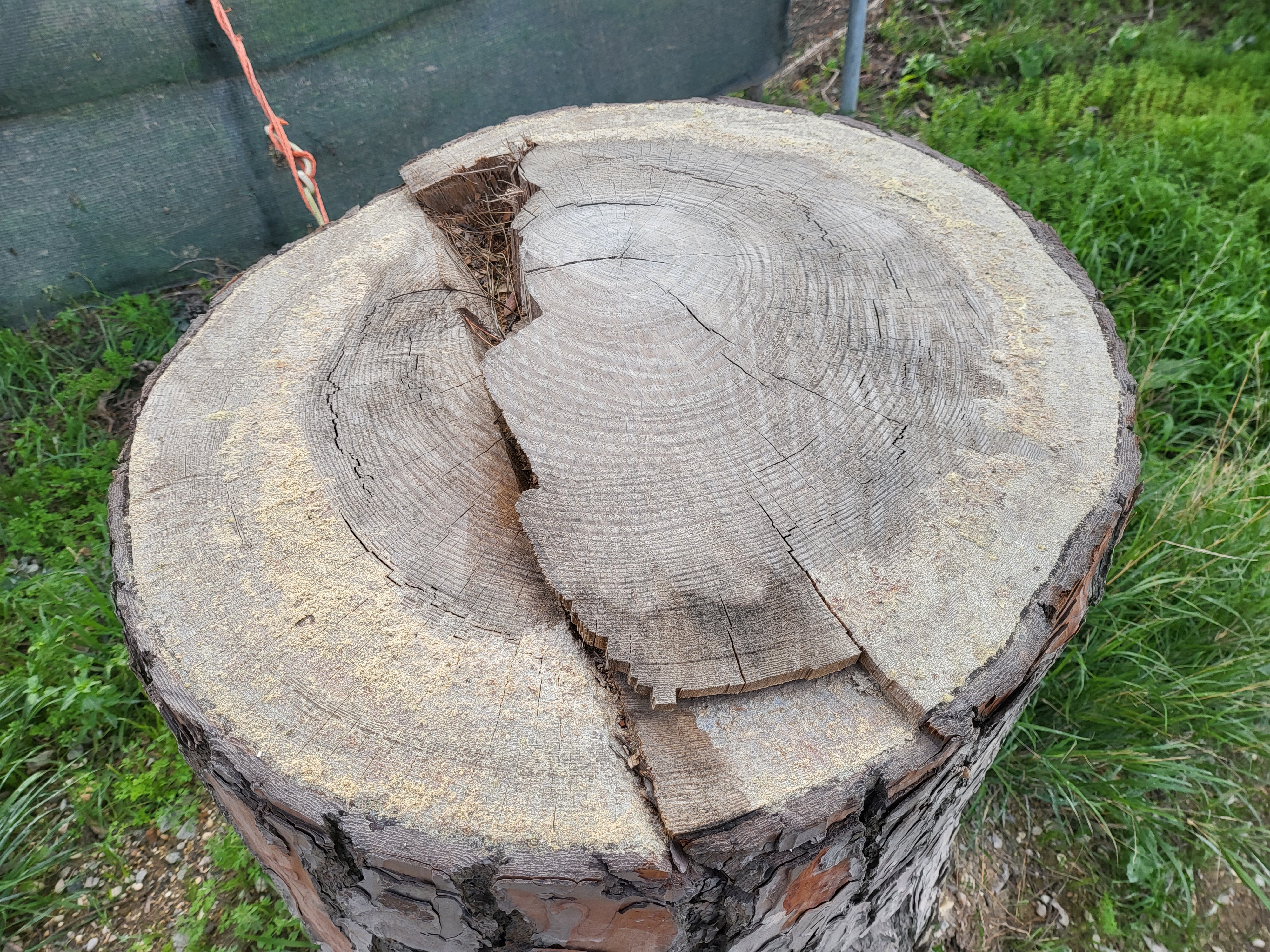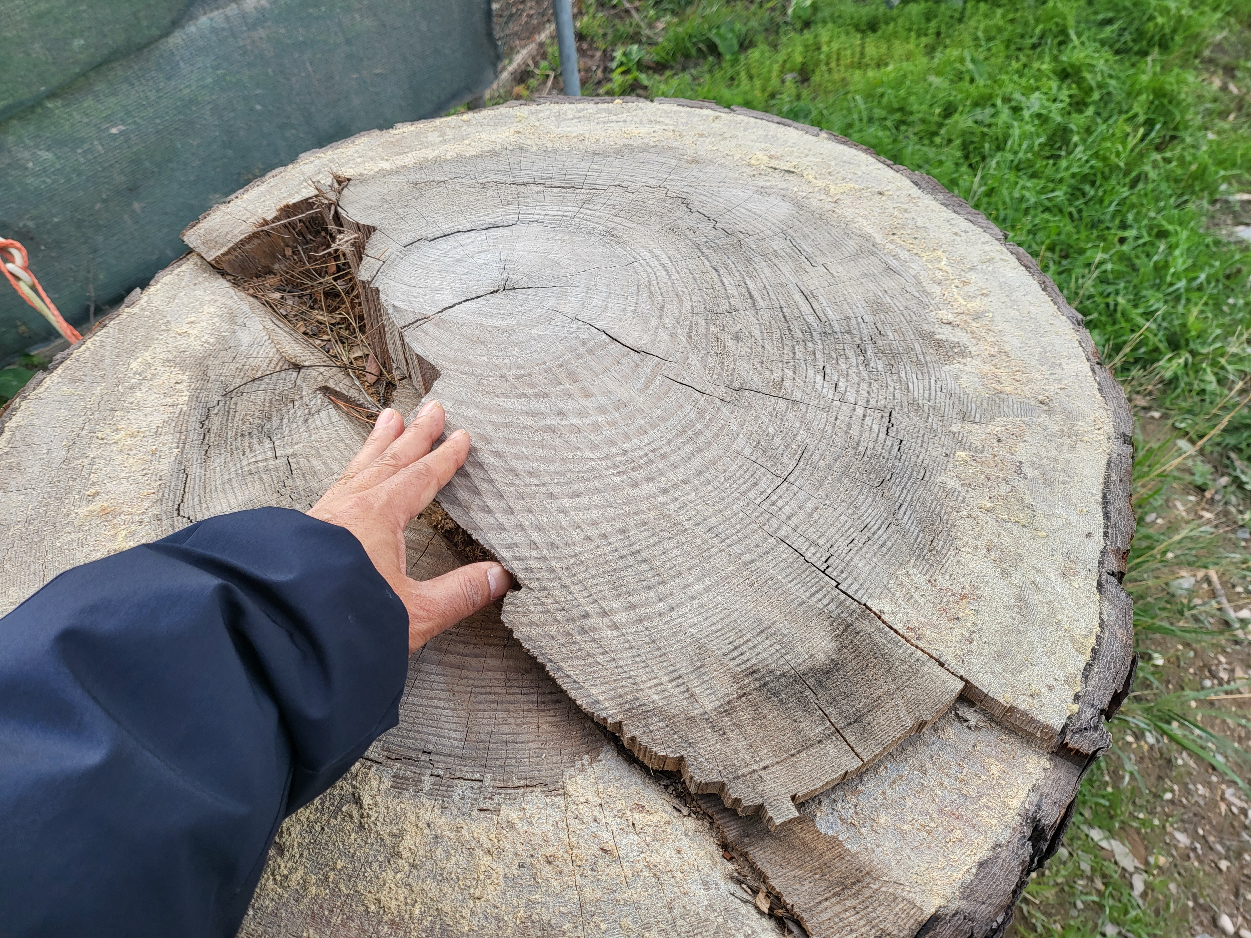 실제로 베어낸 그루터기다. 나이테 숫자를 세아려 봤는데, 얼추 40년산 어간 아닌가 한다. 불과 40년인데 저만큼 자란다.