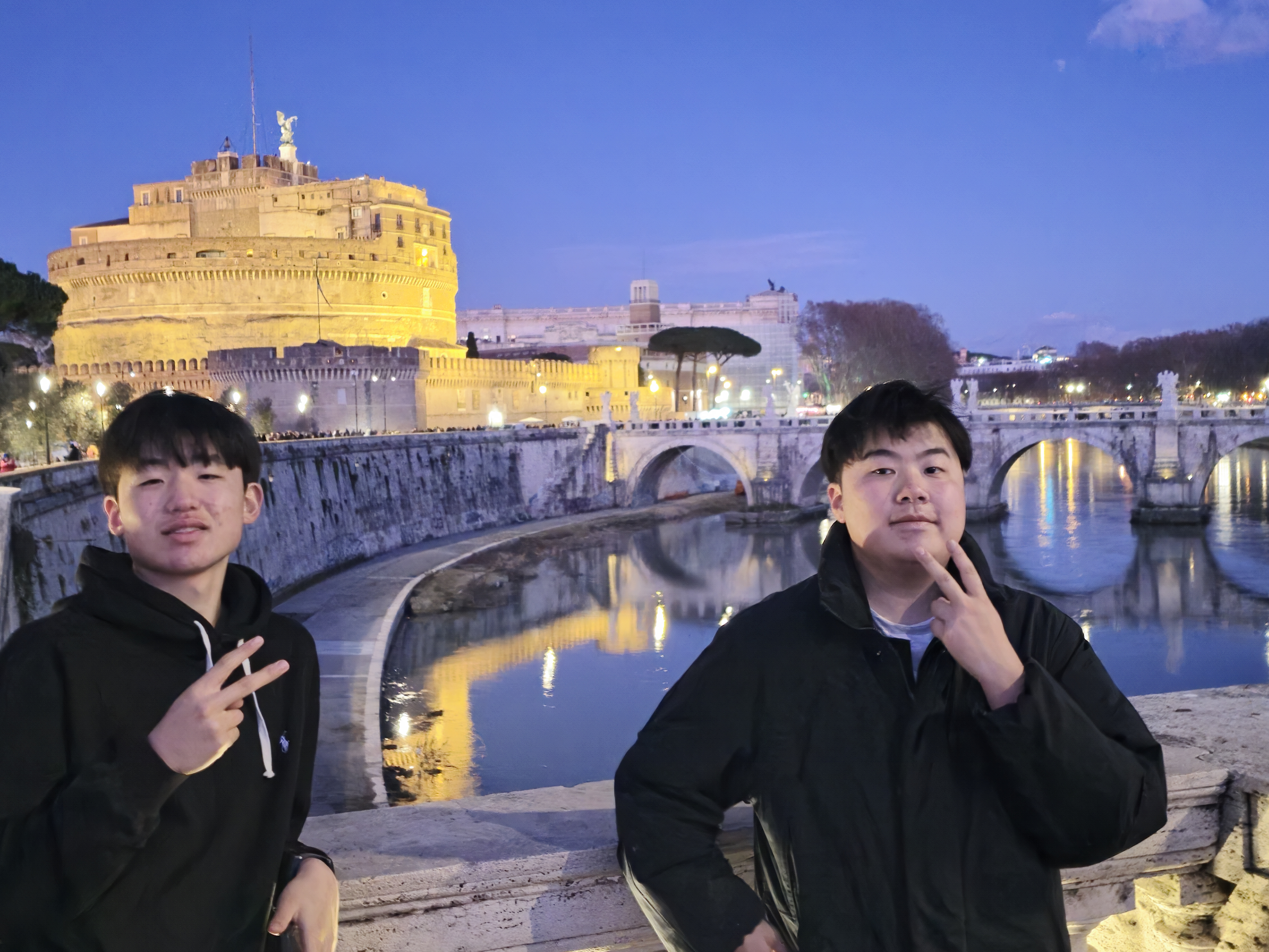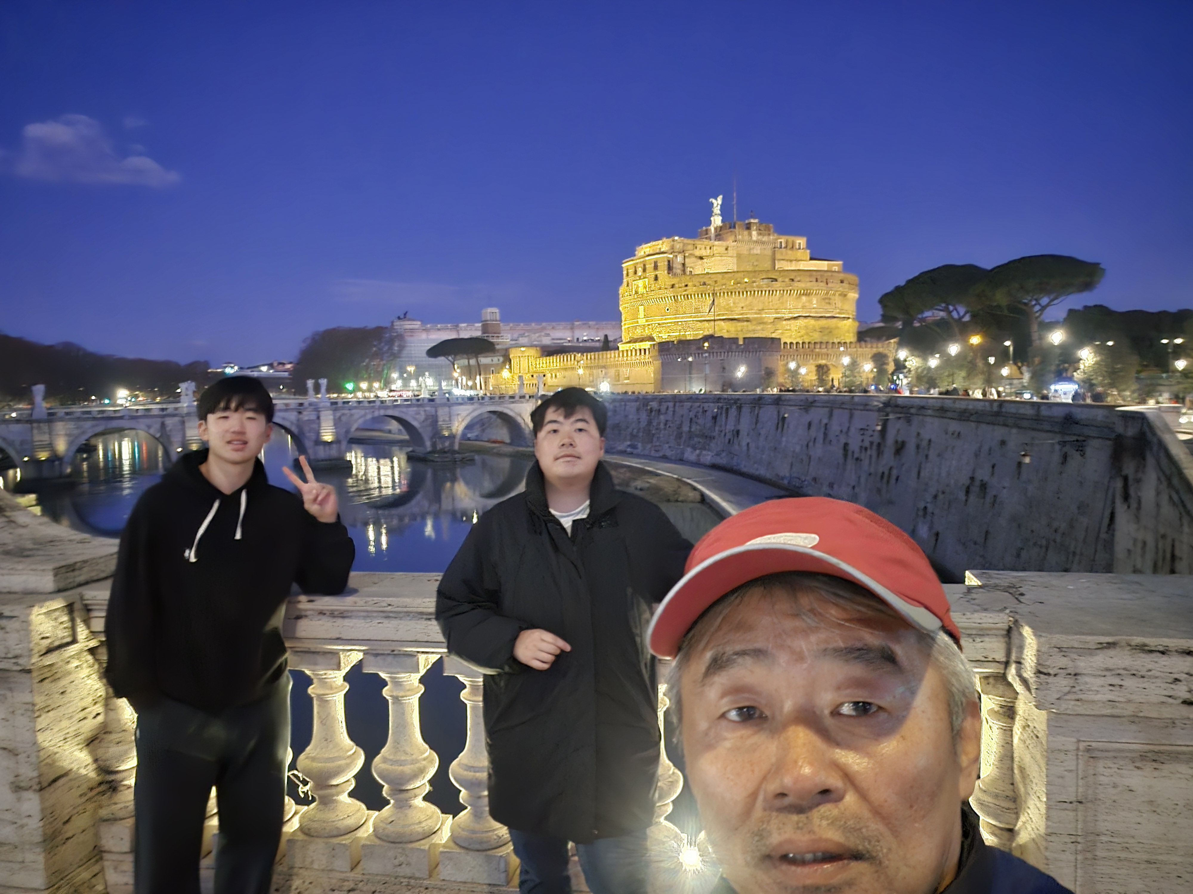 기념 사진 몇 방 찍어주고 앞으로 나와 테베르 다리 건너면 산탄젤로 배경으로 다시 몇 방 박았다.