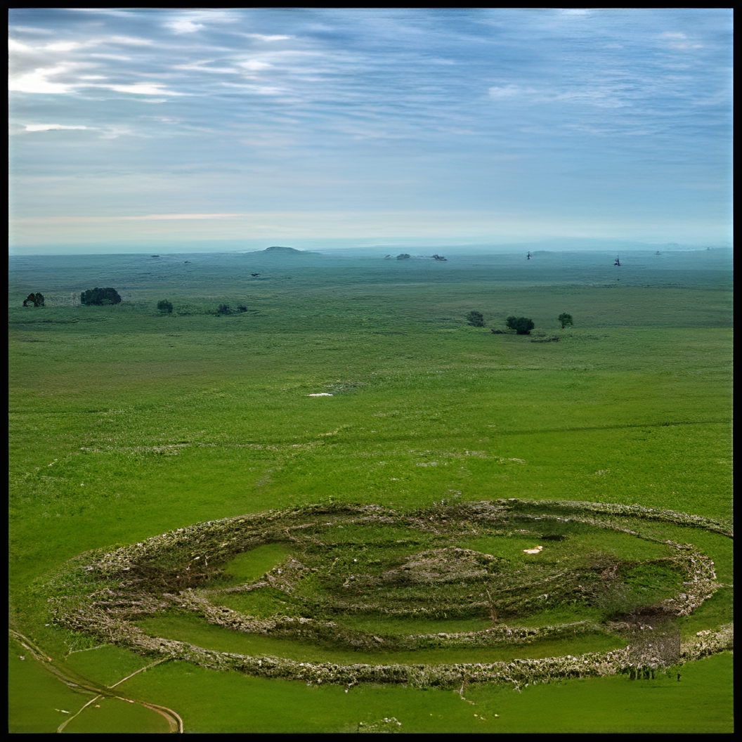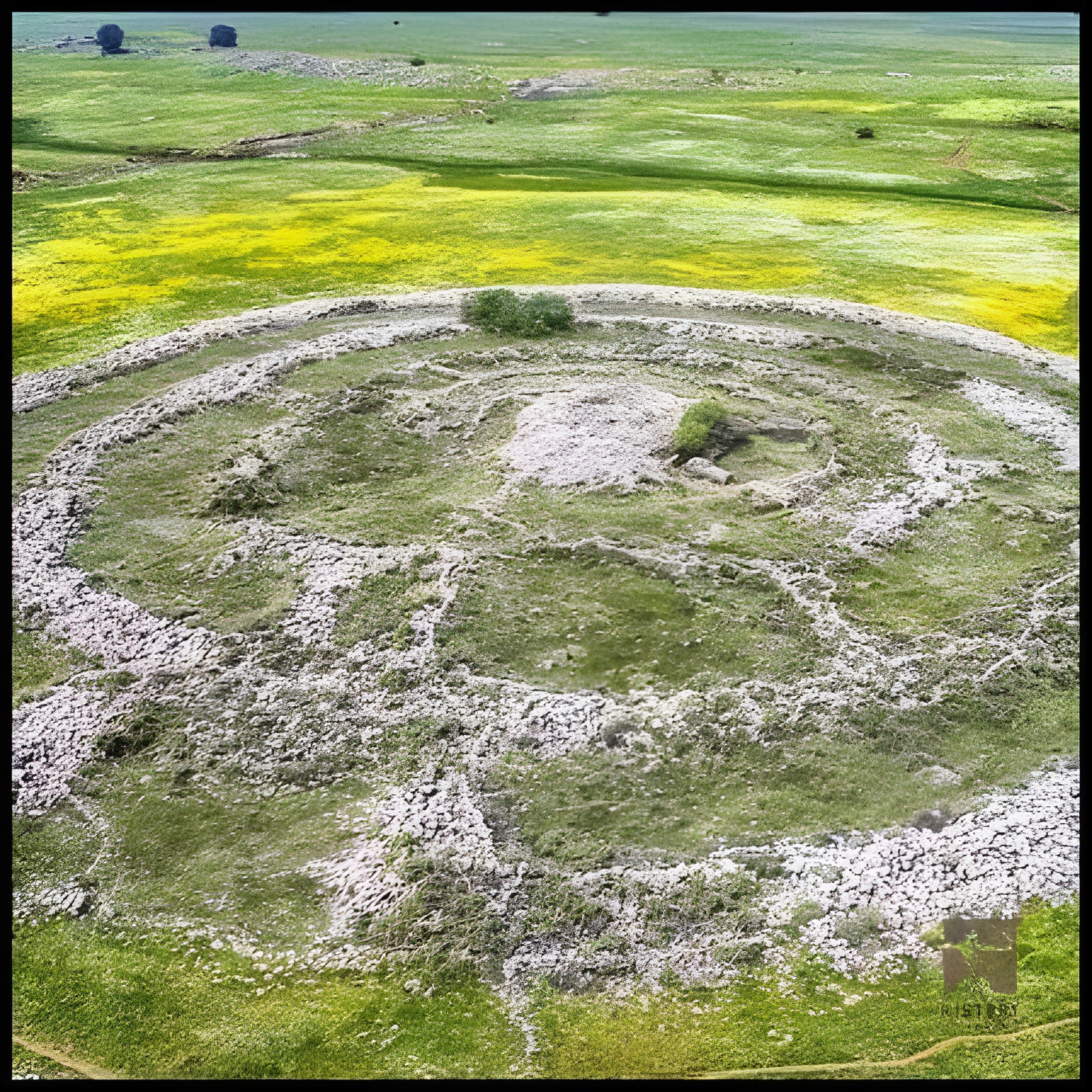 동심원 중 어떤 원은 완전하고 또 어떤 것은 불완전하다. 가장 바깥쪽 동심원 기준 지름이 160m에 달하며, 그 벽 높이는 2.4m에 달한다.