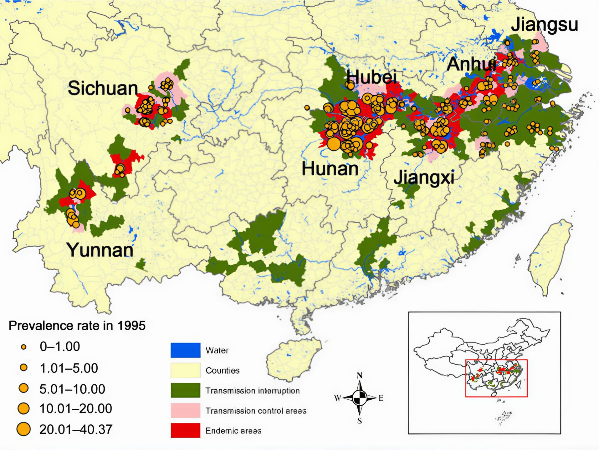 이 지역의 논과 함께 장사 주변에 있던 거대한 운몽대택도 주혈흡충증 발생에 한 몫 했음이 틀림 없다.
