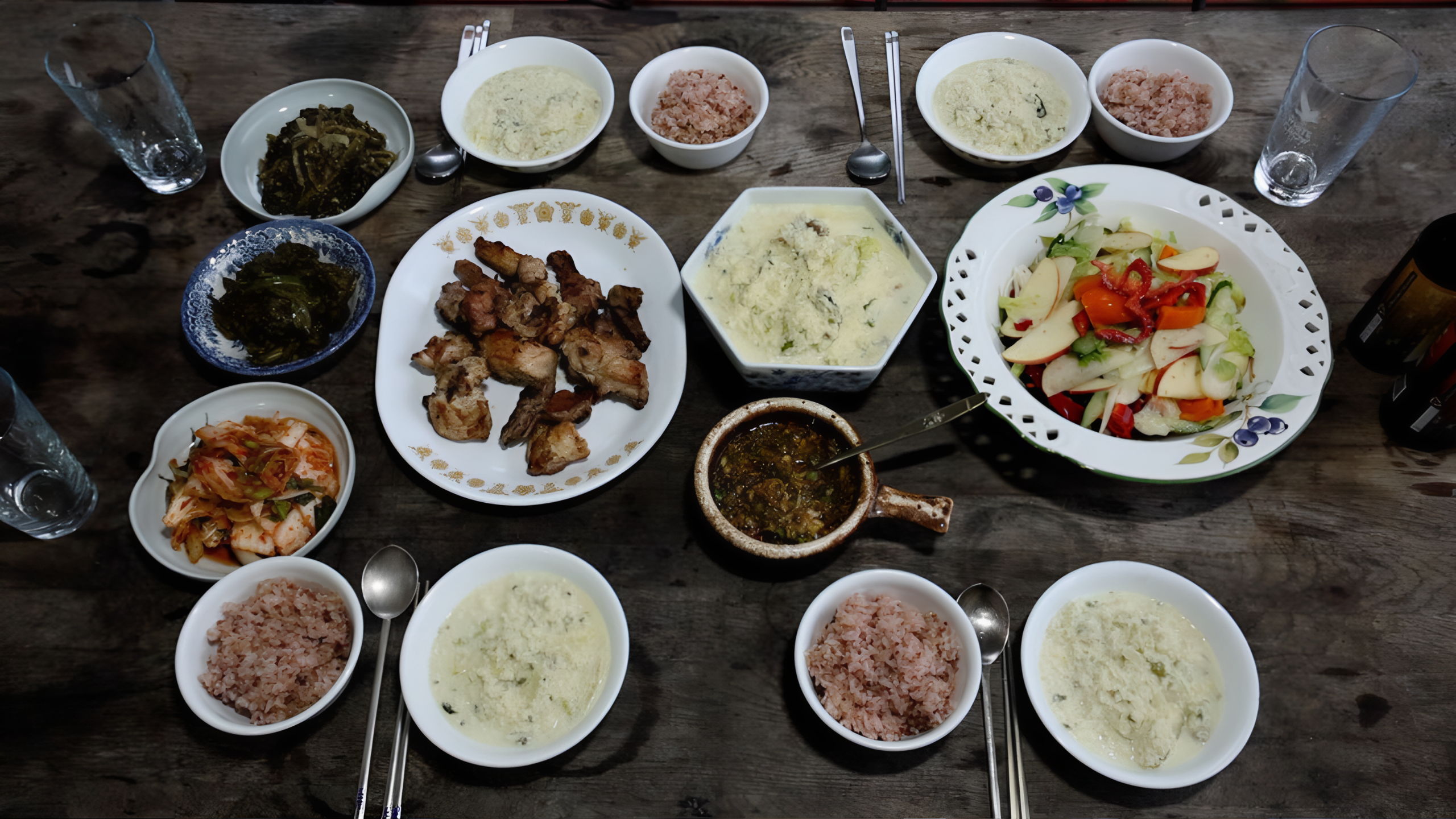 저 위에 밥상을 세팅한 이는 현대 중국인의 밥먹는 방식에 따라 저렇게 놓지 않았을까.