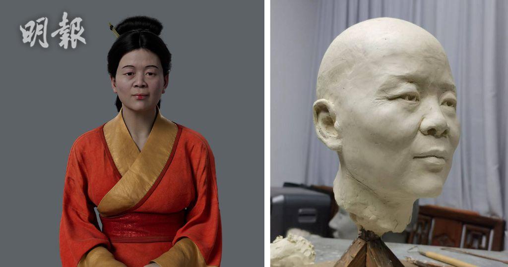 위는 마왕퇴 무덤 1호분 귀부인의 얼굴 복원 작업이다.