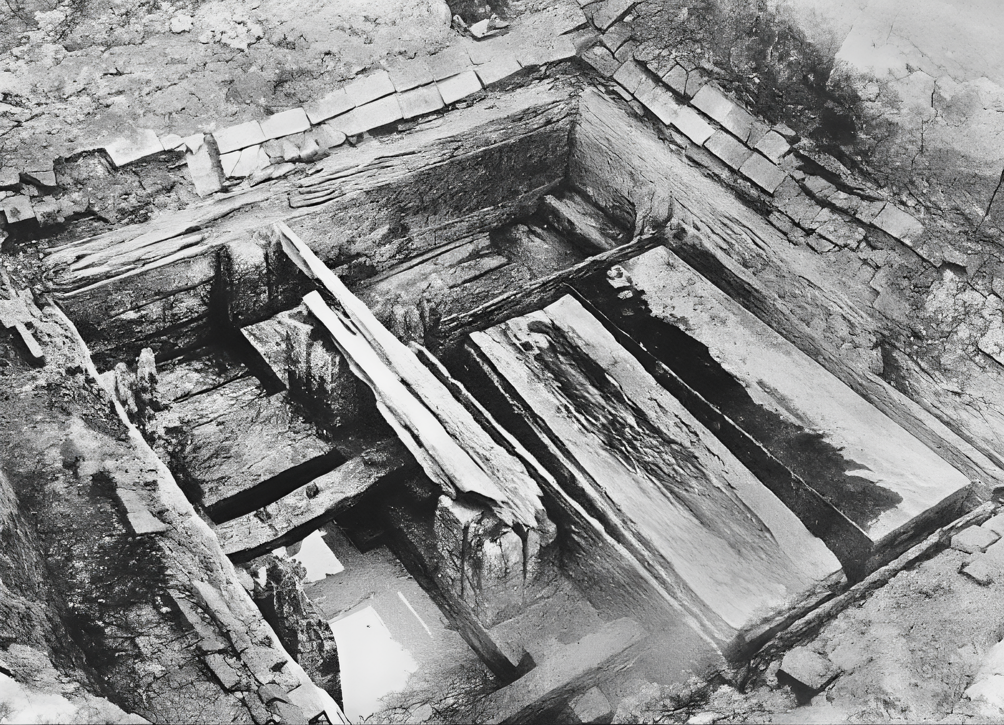 이 초나라 무덤에서 볼 수 있는 목곽 주변 고령토야말로