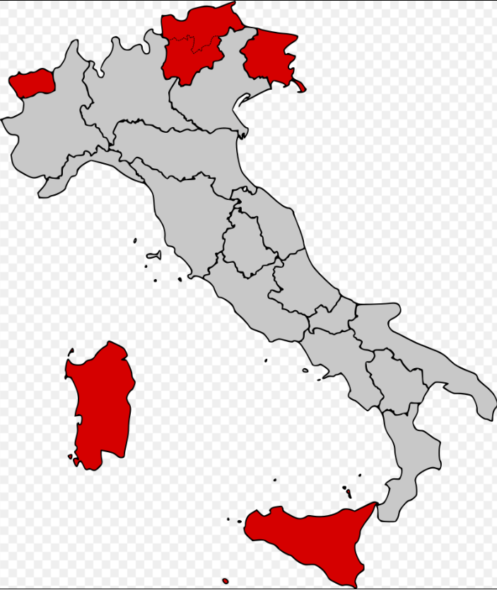 그렇다고 레조네가 다 똑같은 권리를 지니느냐 하면 시칠리아를 비롯한 다섯 군데는 자율성이 상대적으로 강하다. 우리로 치면 제주도를 특별행정자치도로 정했을 것인데, 이와 흡사하다고 보면 된다.