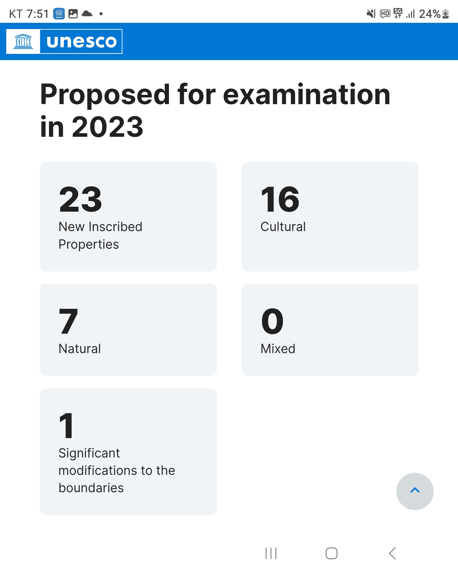 유네스코 홈페이지 들어가면 이런 항목이 세분되어 있는데 이건 2023년 심사한 결과다.
