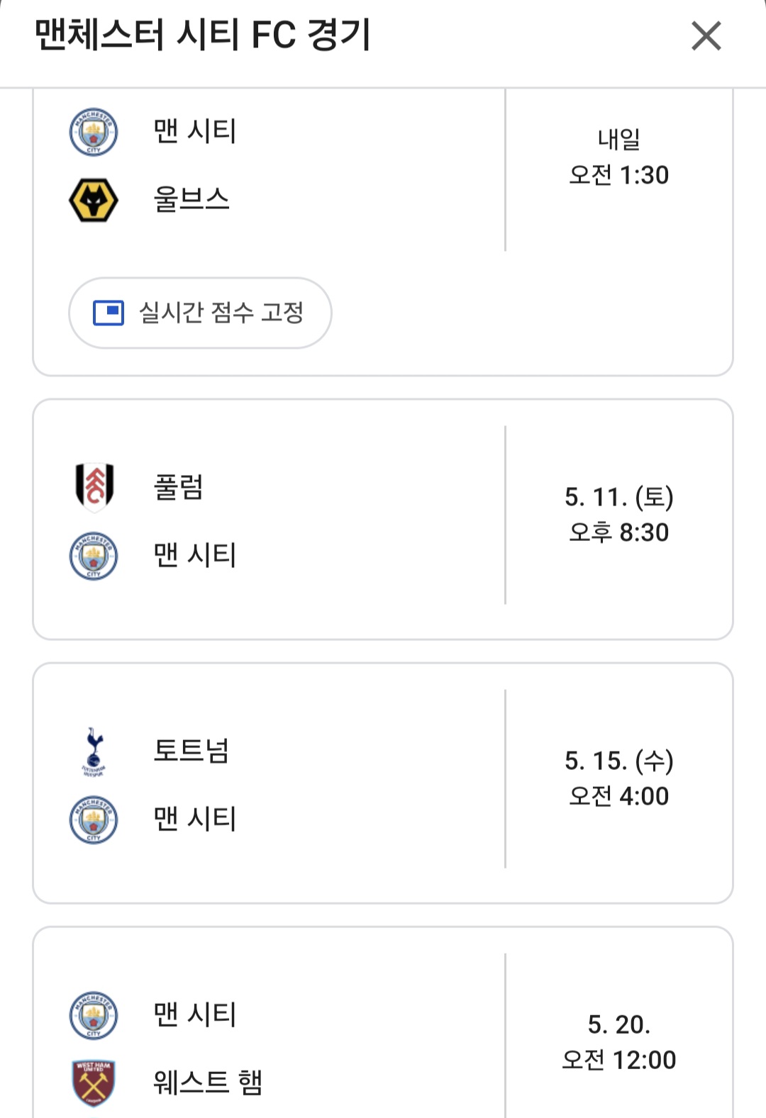 맨시티 남은 일정이 토트넘을 빼고선 쉽게 보인다 하나 내 보기엔 네 팀 모두 까다롭기만 하다.