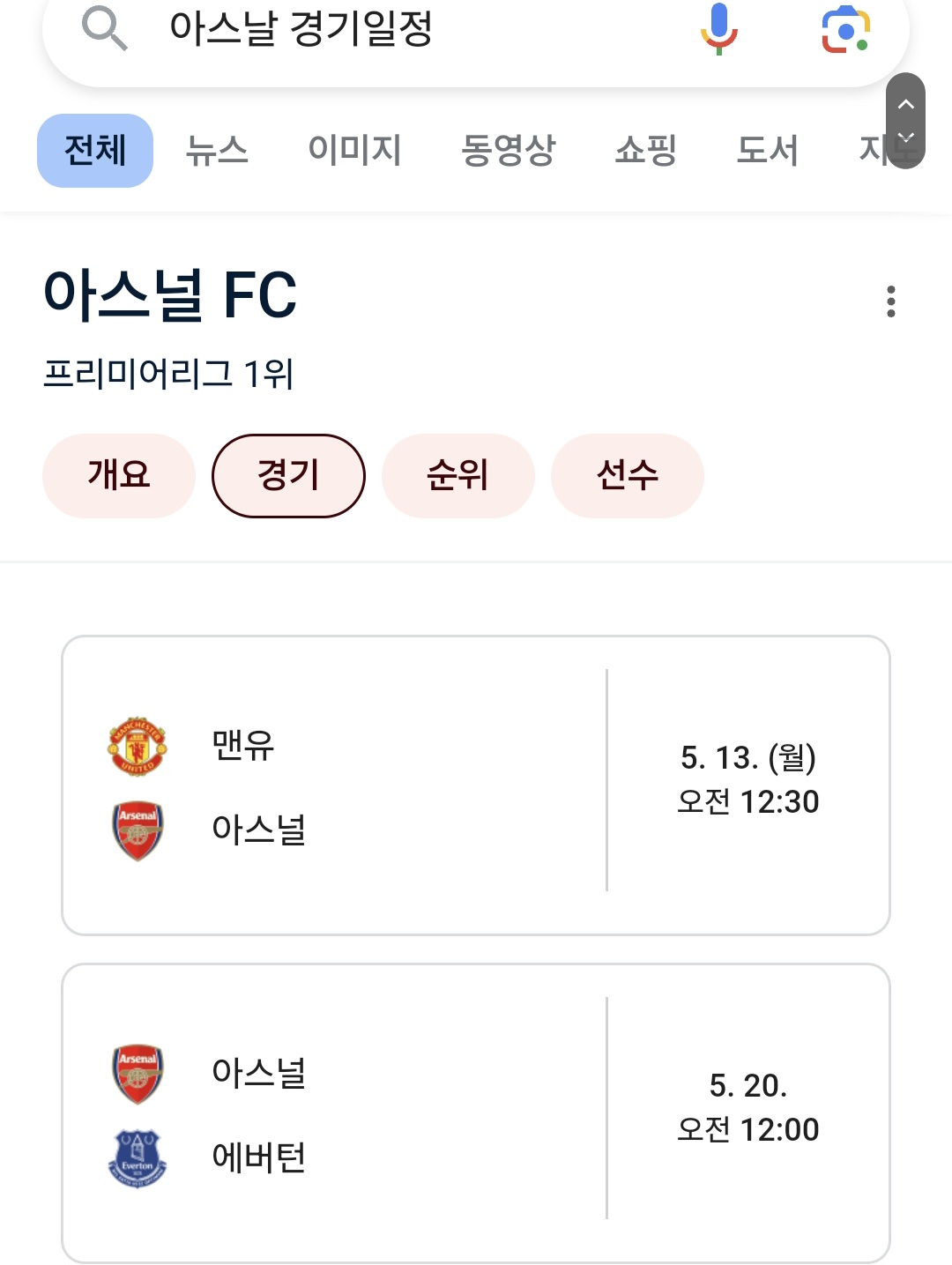 조금전 끝난 본머스와의 36라운드를 치른 아스널이 승점 83점으로 수위를 유지한 가운데