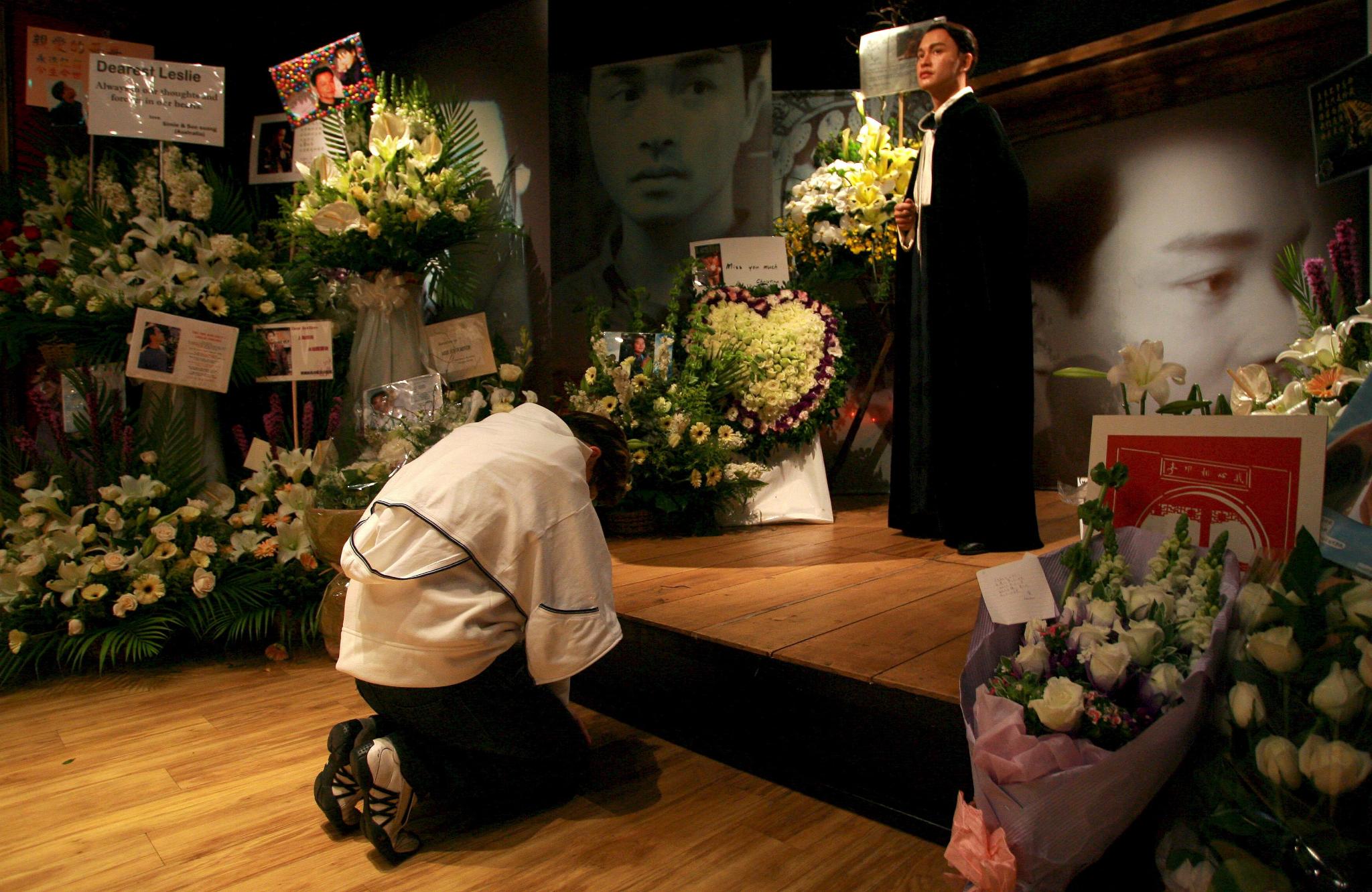 이 사진은 2003년 6월 2일 오전 경기 고양 일산구 여래사라는 사찰에서 열린 장궈룽 팬카페 '장국영 사랑' 회원 400명이 참석해 눈물을 흘리며 천도재를 올리는 장면을 포착한 것이다.
