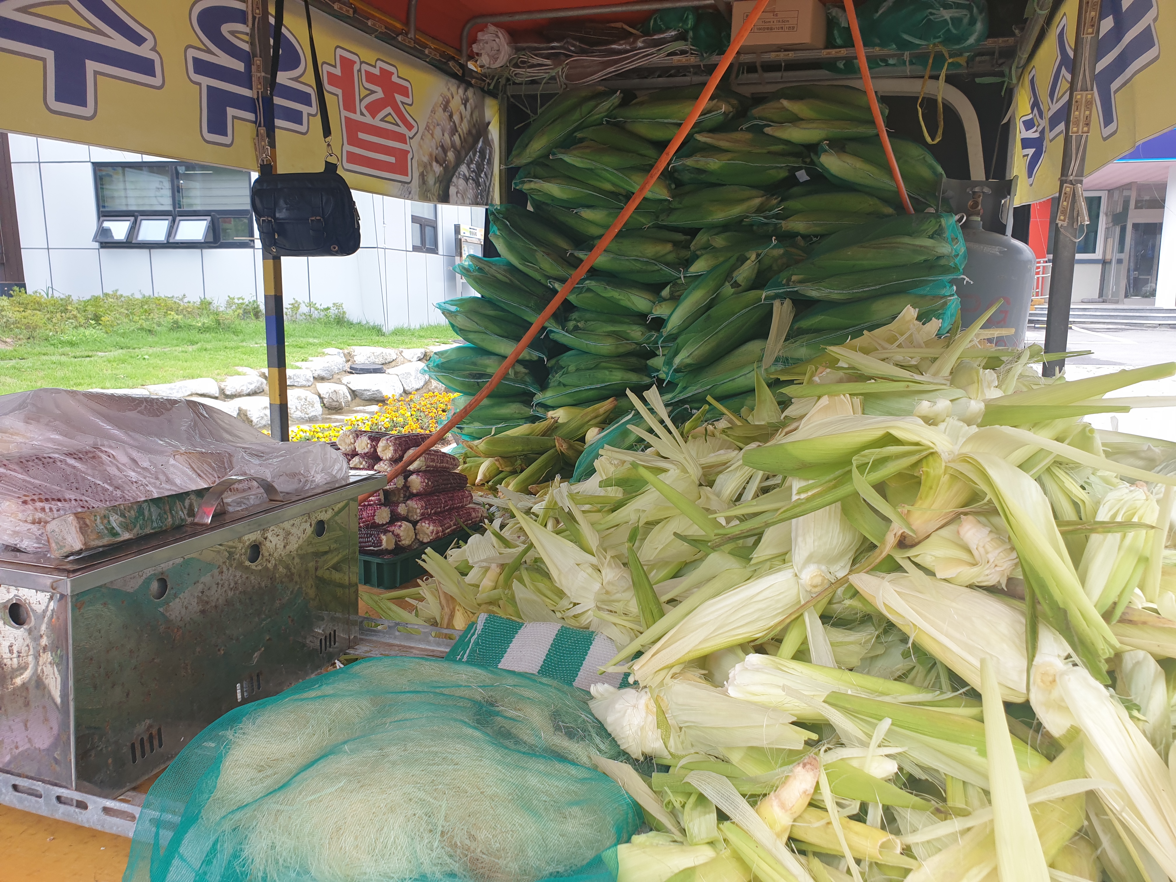 저 만두가게 들리기전, 남원역에서 접선한 이 원장과 만나 장수 읍내로 이동하던 중 어느 동네 어귀 길가에서 파는 삶은 옥수수를 사서는 두 개씩 씹어돌리고 하나는 곧 접선할 민소리 장군을 위해 남겨두었으니 옥수수 역시 둘 다 아침을 거른 여파도 있겠지만 이구동성으로 별미라 했다.