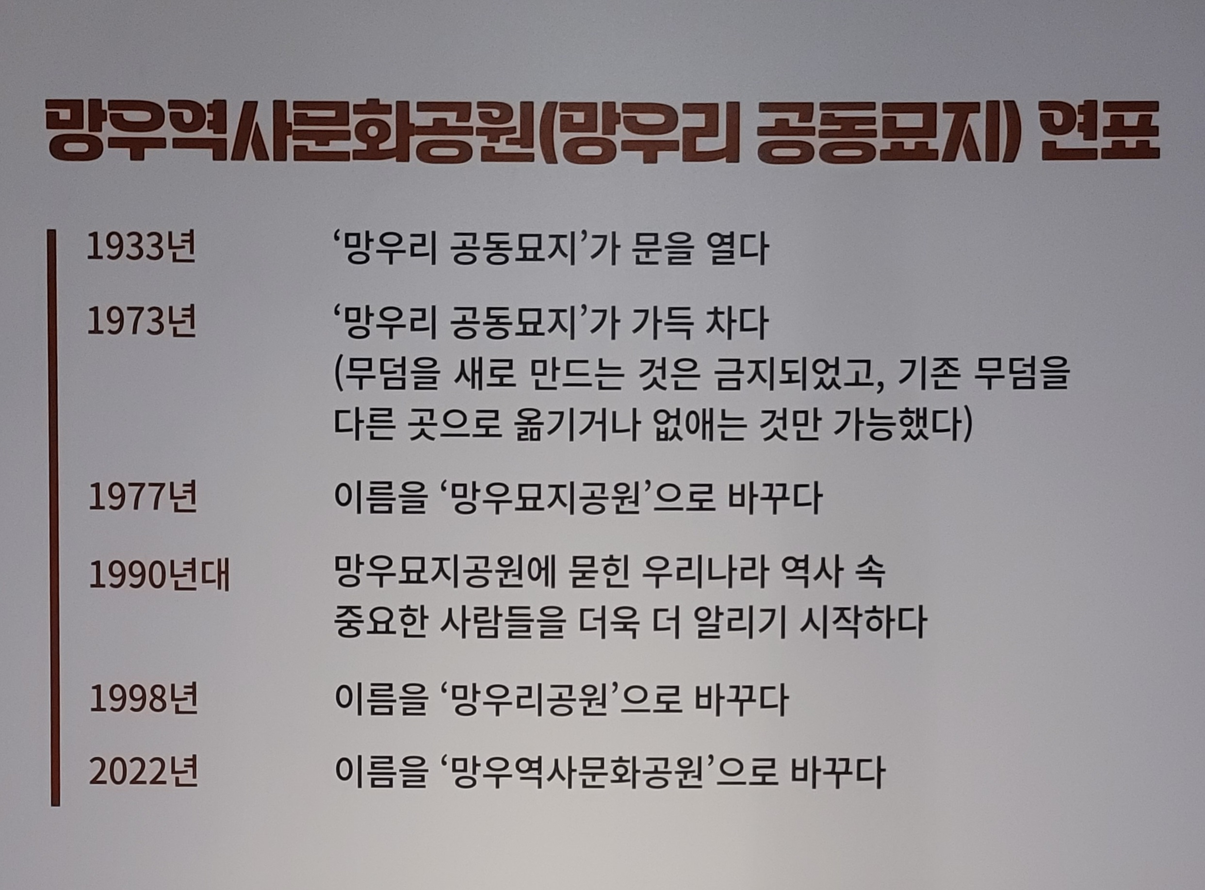 이런 역사는 망우동에 두고두고 짐이 되기도 하는데 공동묘지 좋아하는 사람 없다.