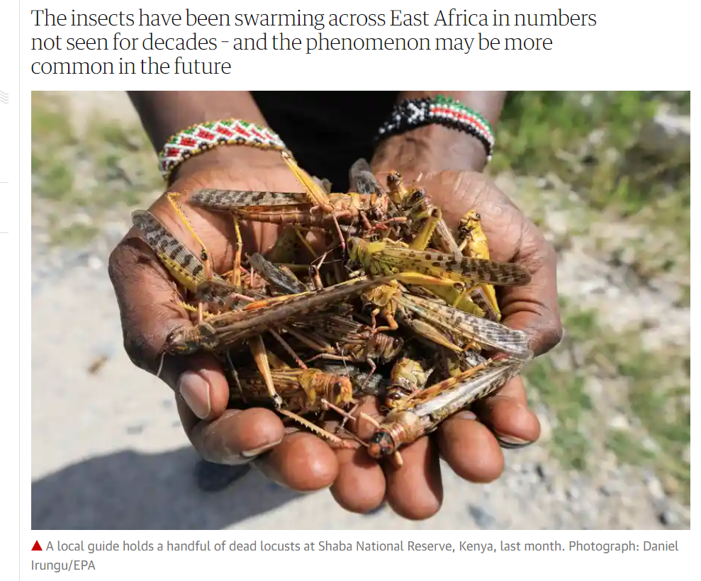 메뚜기 덮친 케냐 농부들의 '반격'…메뚜기를 사료·비료로, 이재영기자, 국제뉴스 (송고시간 2021-02-25 15:51)