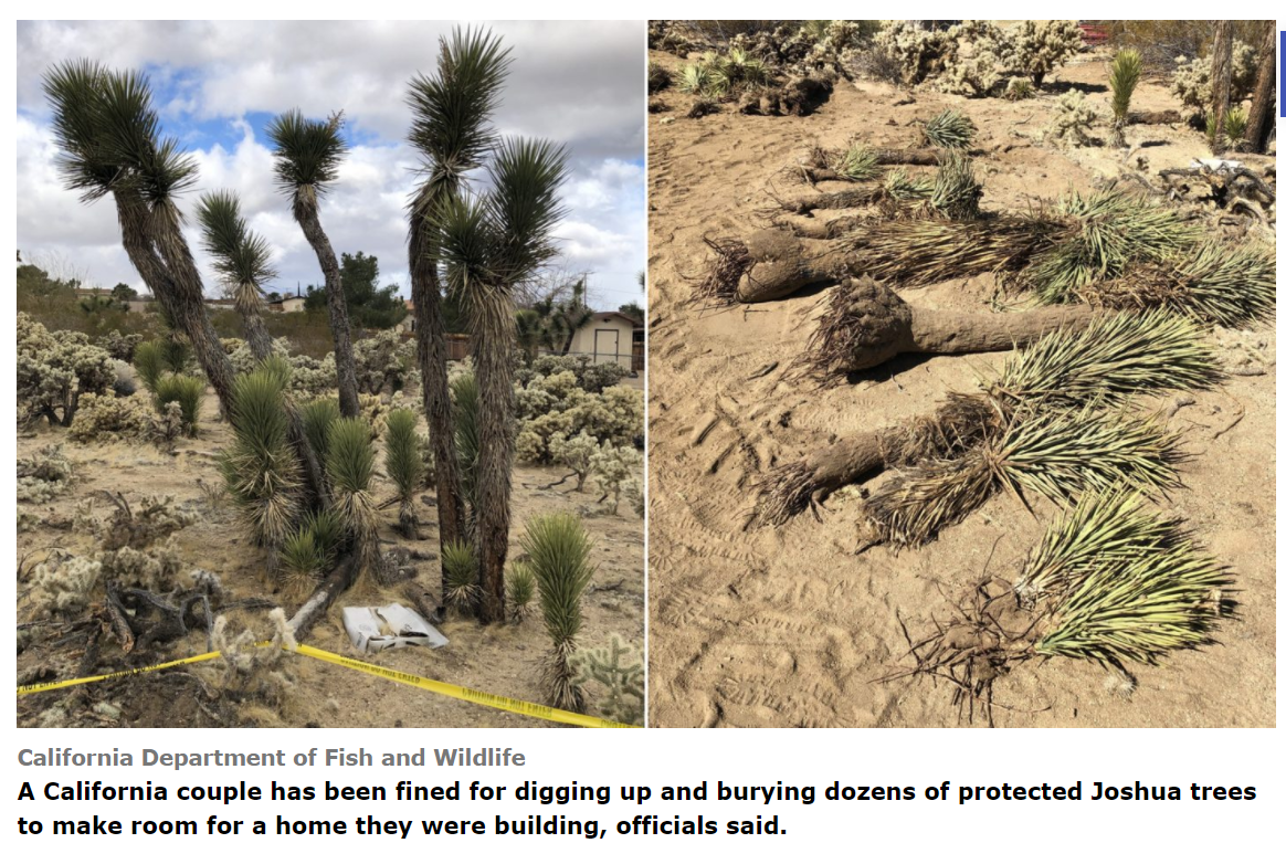Couple fined $18,000 for bulldozing dozens of Joshua trees to make way for home