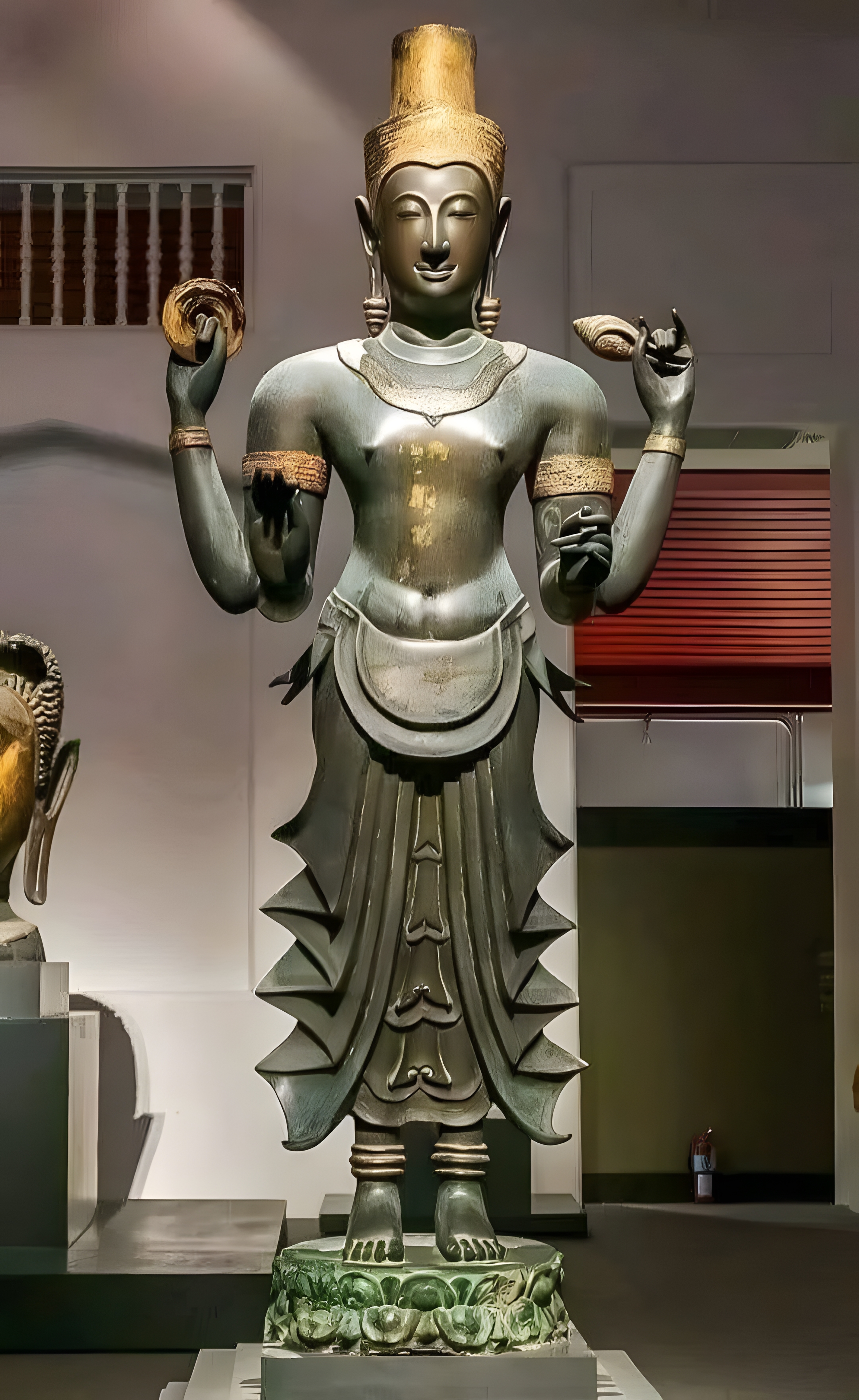 이 거대한(8피트 높이) 차투르부야 스리 비슈누 chaturbhuja Sri Vishnu 는 차크라 Chakra 와 샹카 Shankha [조개] 를 쥔 상태이며 주름 잘 잡힌 아랫도리를 걸쳤다.