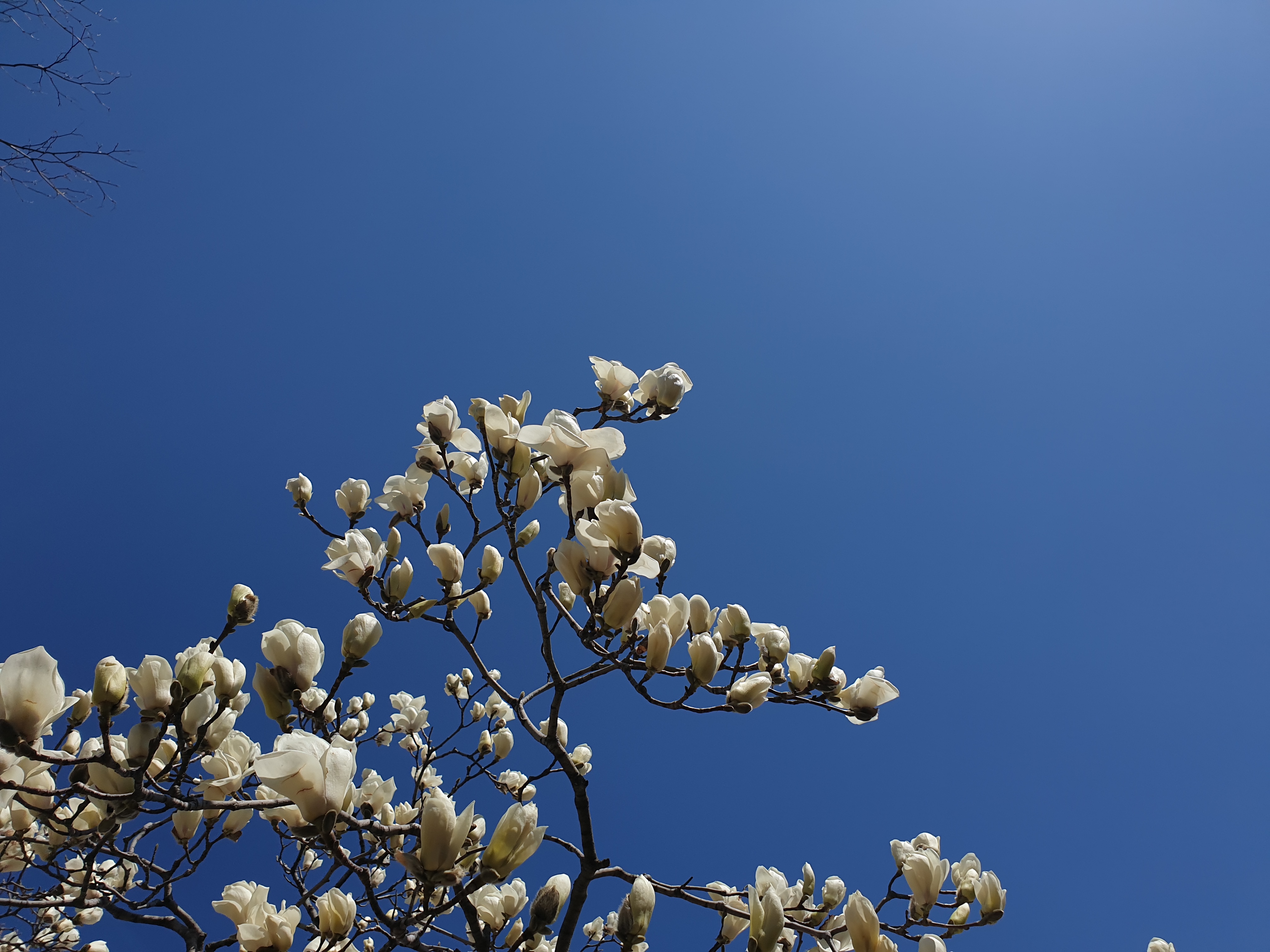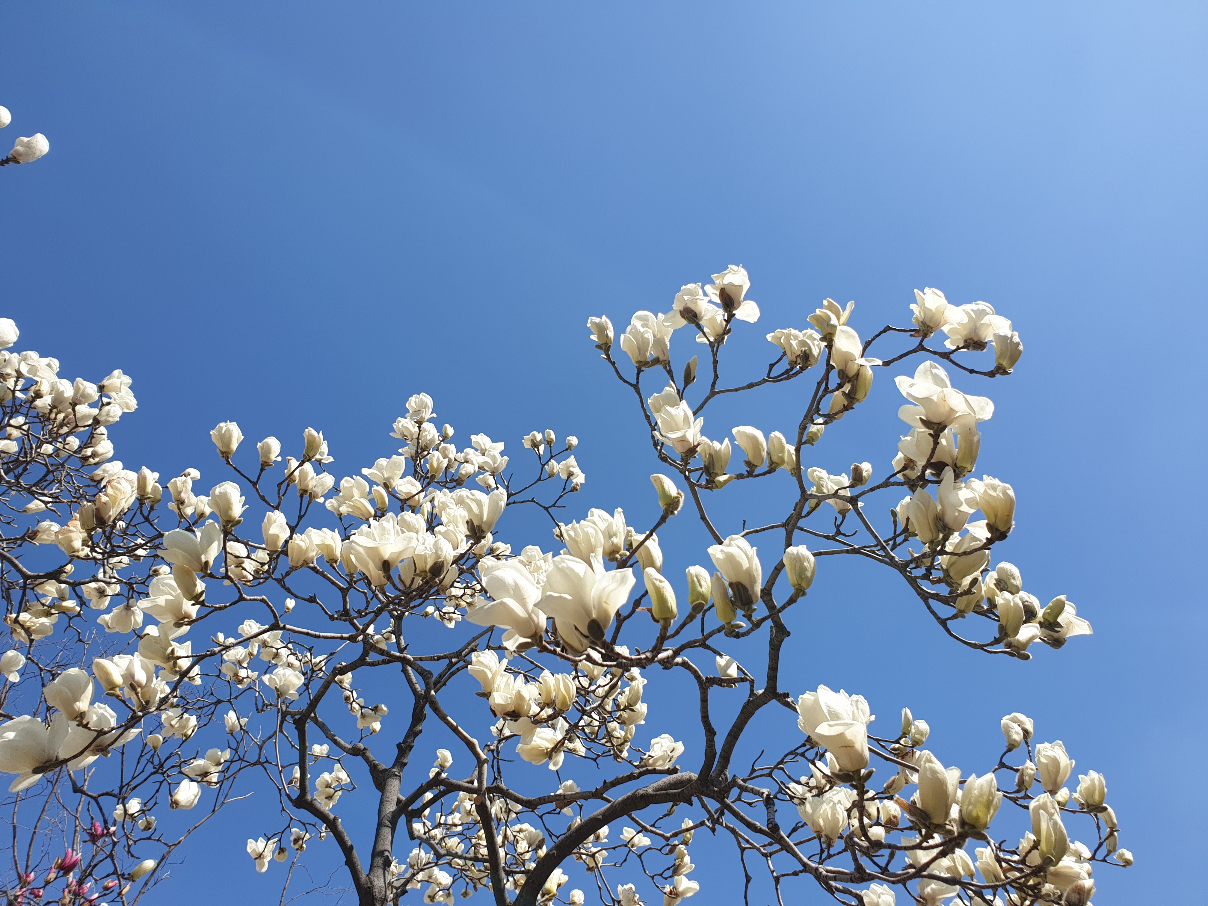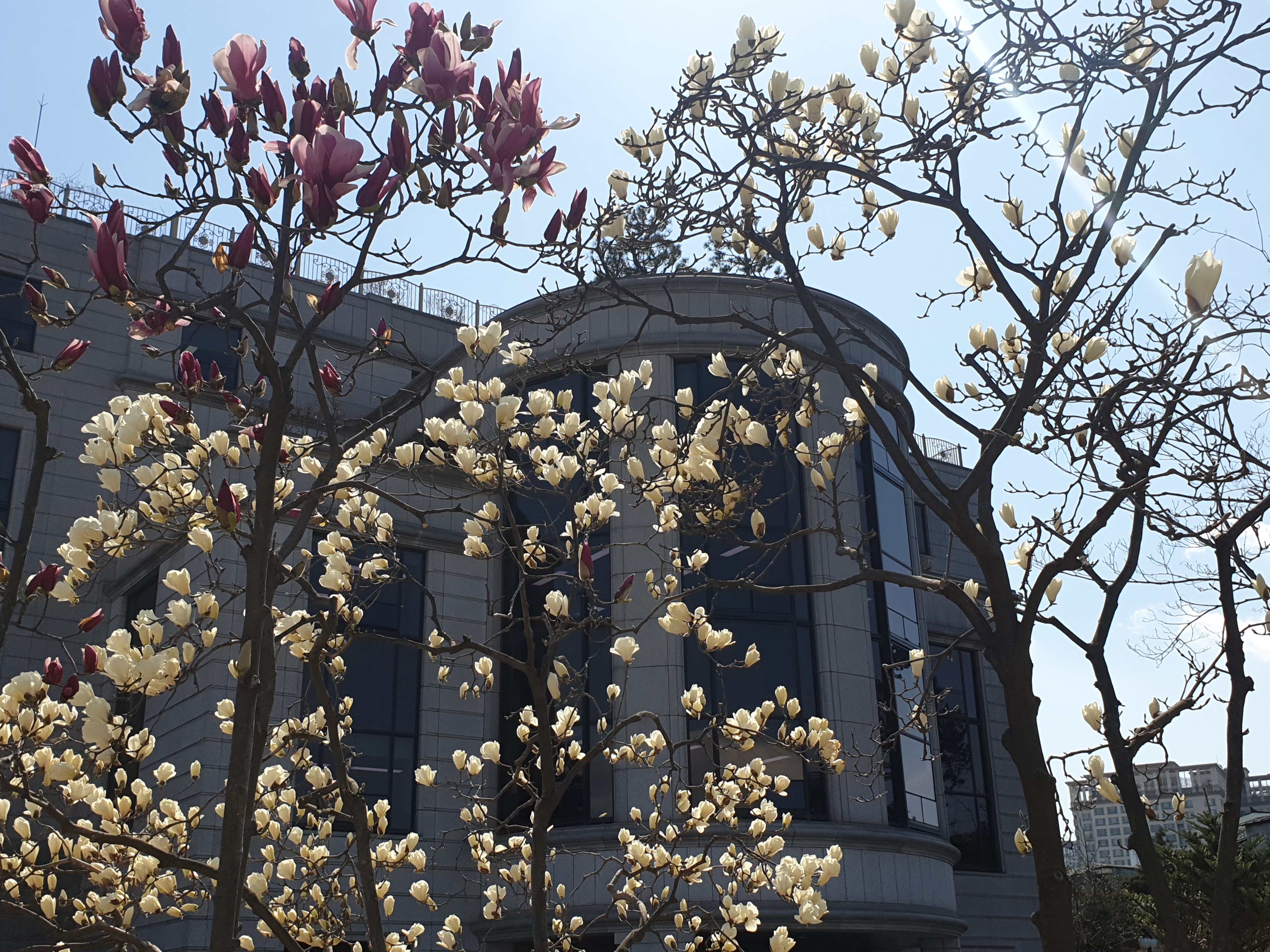 공활한 가을 같이 펼친 하늘 배경으로 순백점박이 목련송이로 장식박아보는데 각중에 이런 봄을 몇 번이나 더 볼런지 모르겠지만 앞선 날보다 적을 것임을 알고는 씩 쪼개봤다.