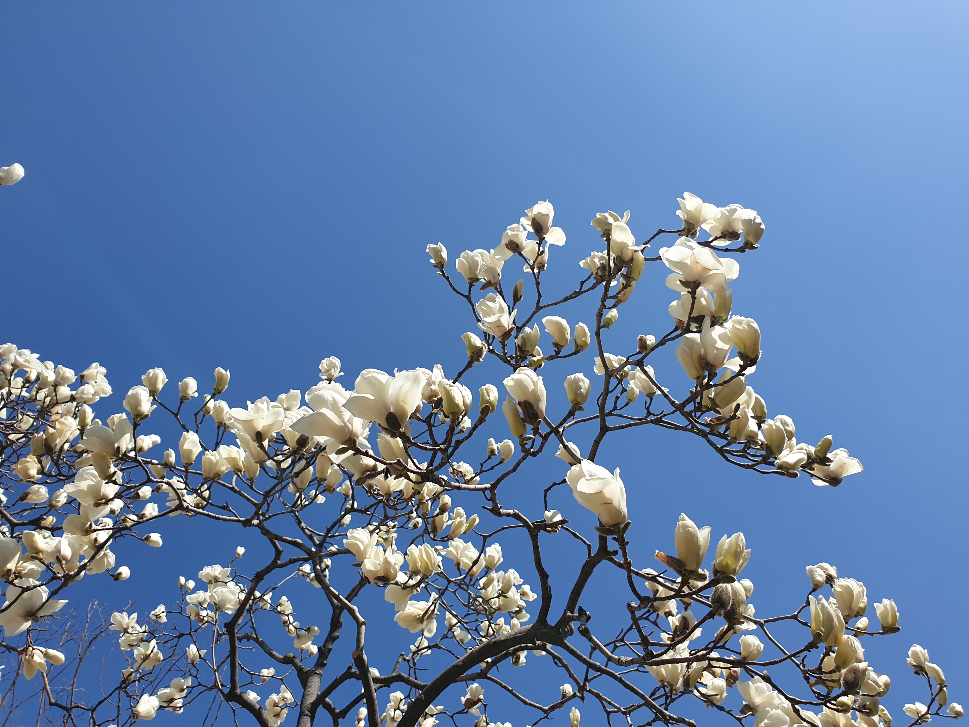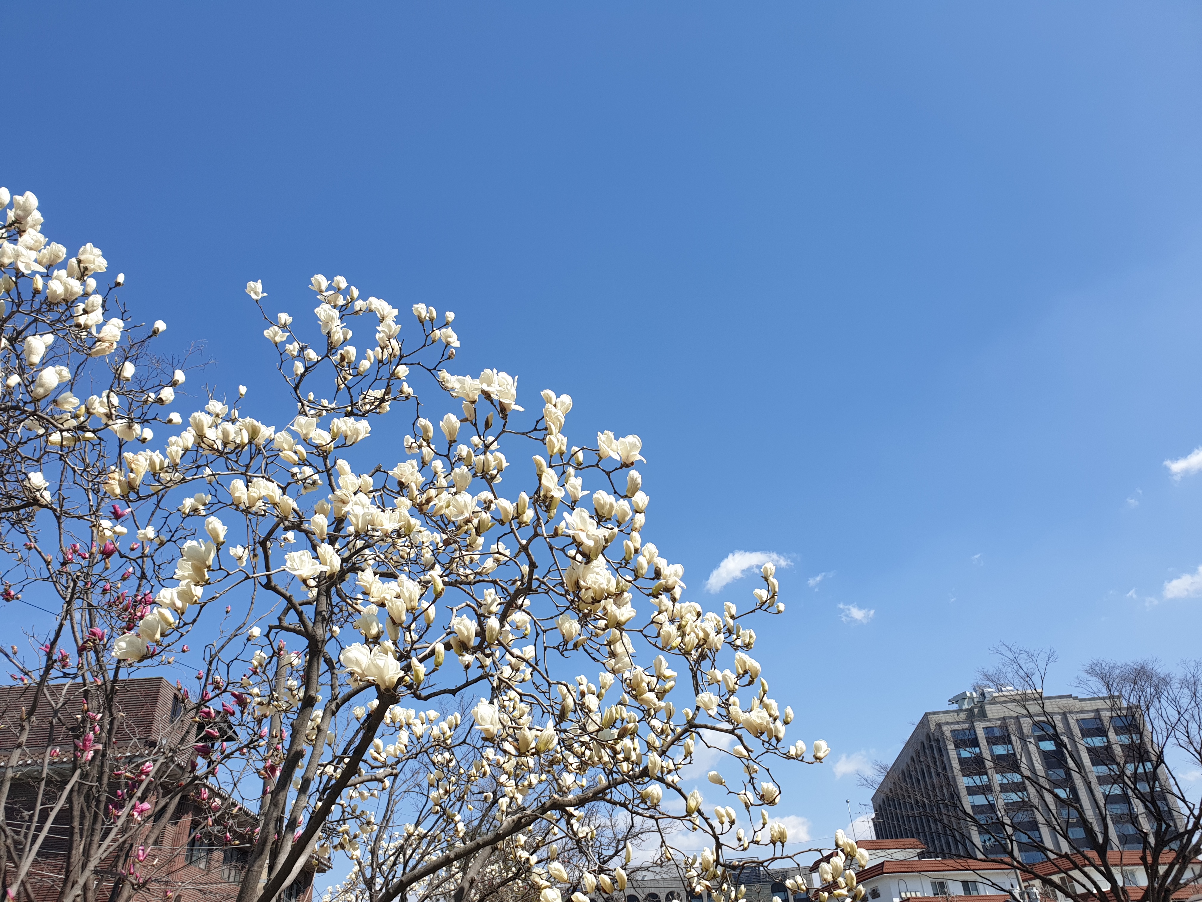 공활한 가을 같이 펼친 하늘 배경으로 순백점박이 목련송이로 장식박아보는데 각중에 이런 봄을 몇 번이나 더 볼런지 모르겠지만 앞선 날보다 적을 것임을 알고는 씩 쪼개봤다.