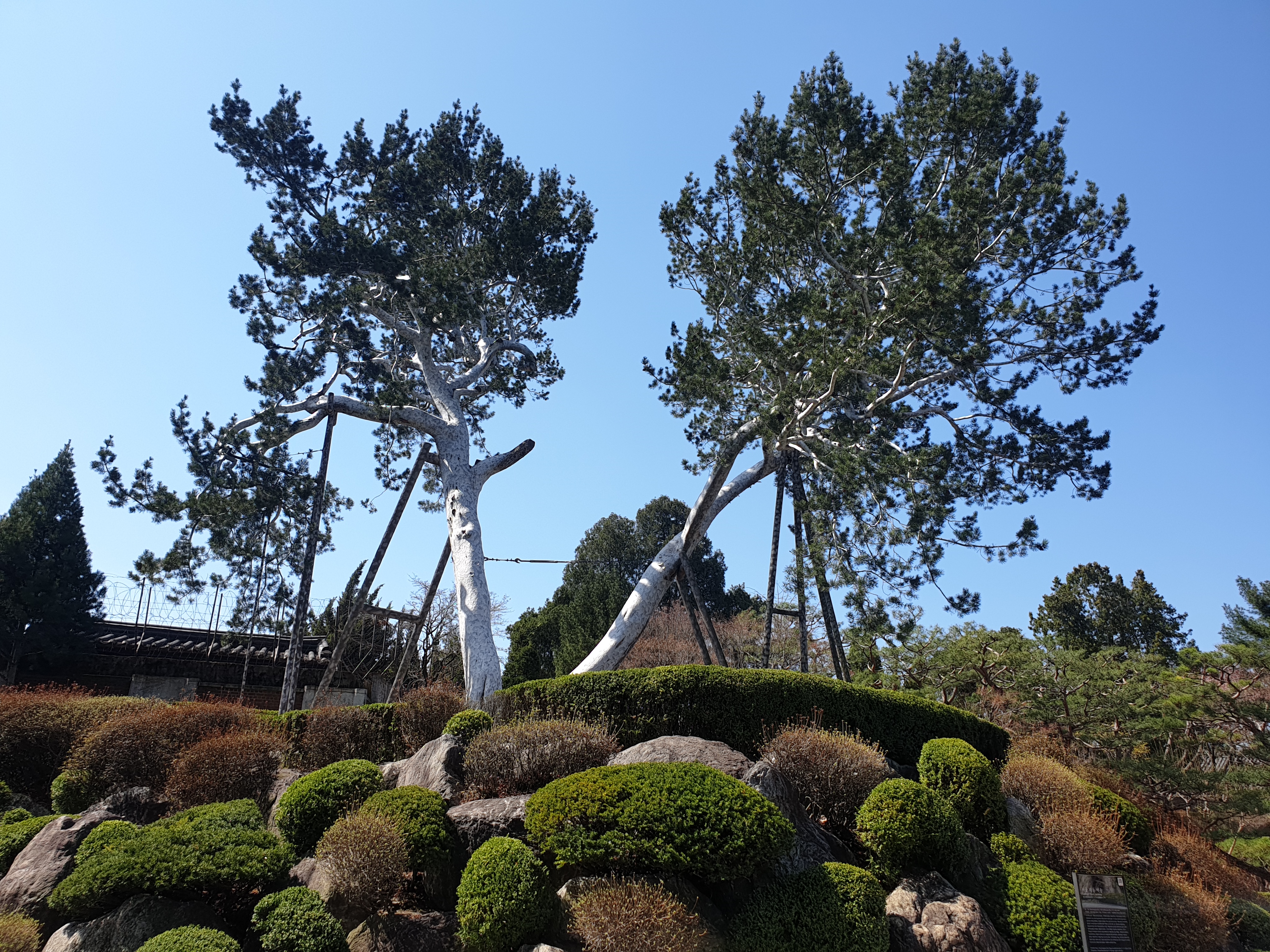 한번 찾아보마 해서 방문자명부 입구서 작성하고선 경내 들어서 오른편으로 돌아 뒤안 언덕배기 우뚝 선 채 둥치서 두 갈래로 번져나간 백송을 마주한다.