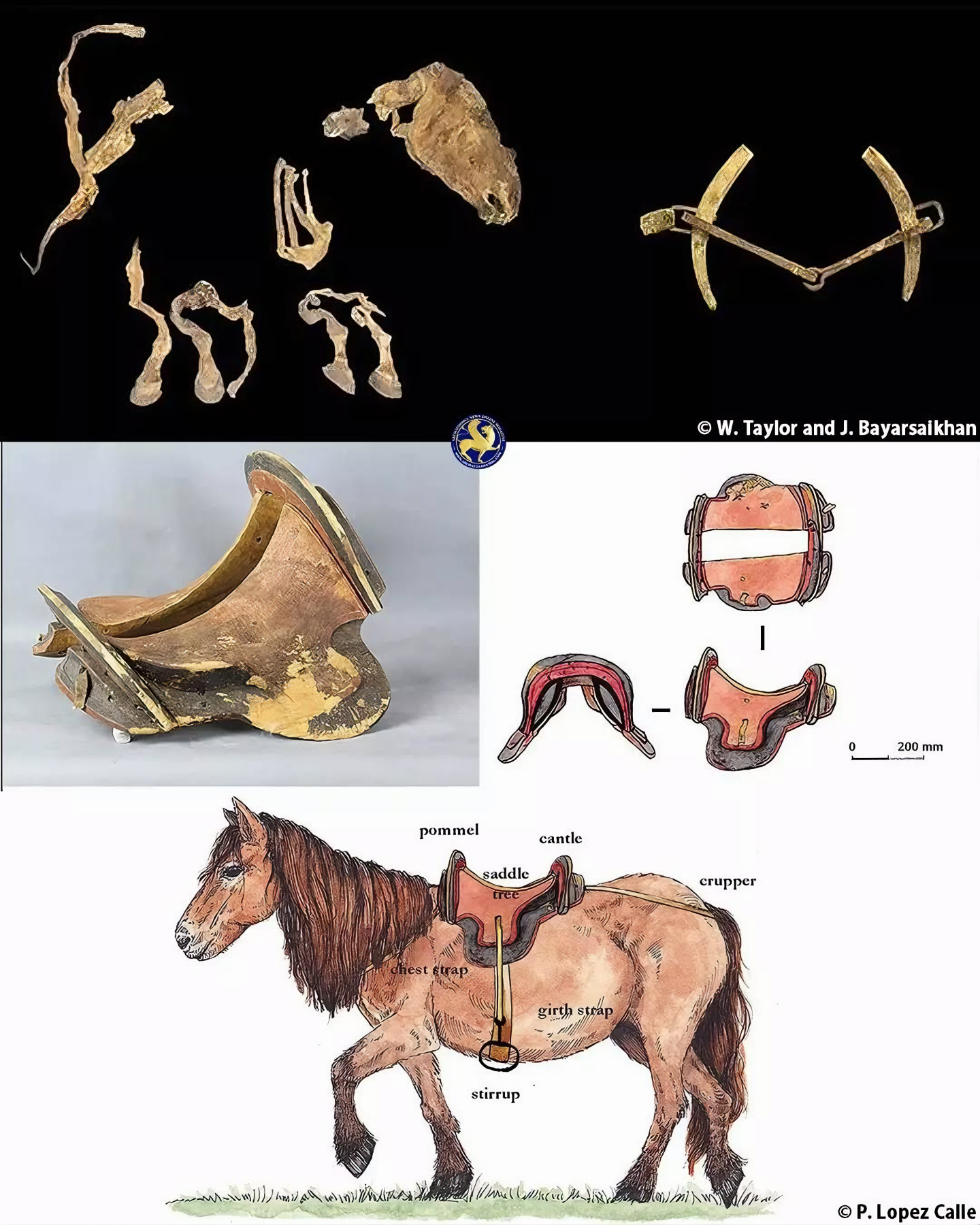 국제 고고학 팀이 고대 몽골 무덤에서 철제 등자iron stirrups가 달린 놀라울 정도로 보존된 나무 프레임 안장wooden frame saddle을 발견했다 하거니와