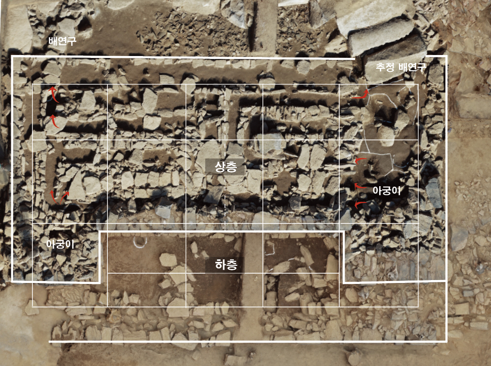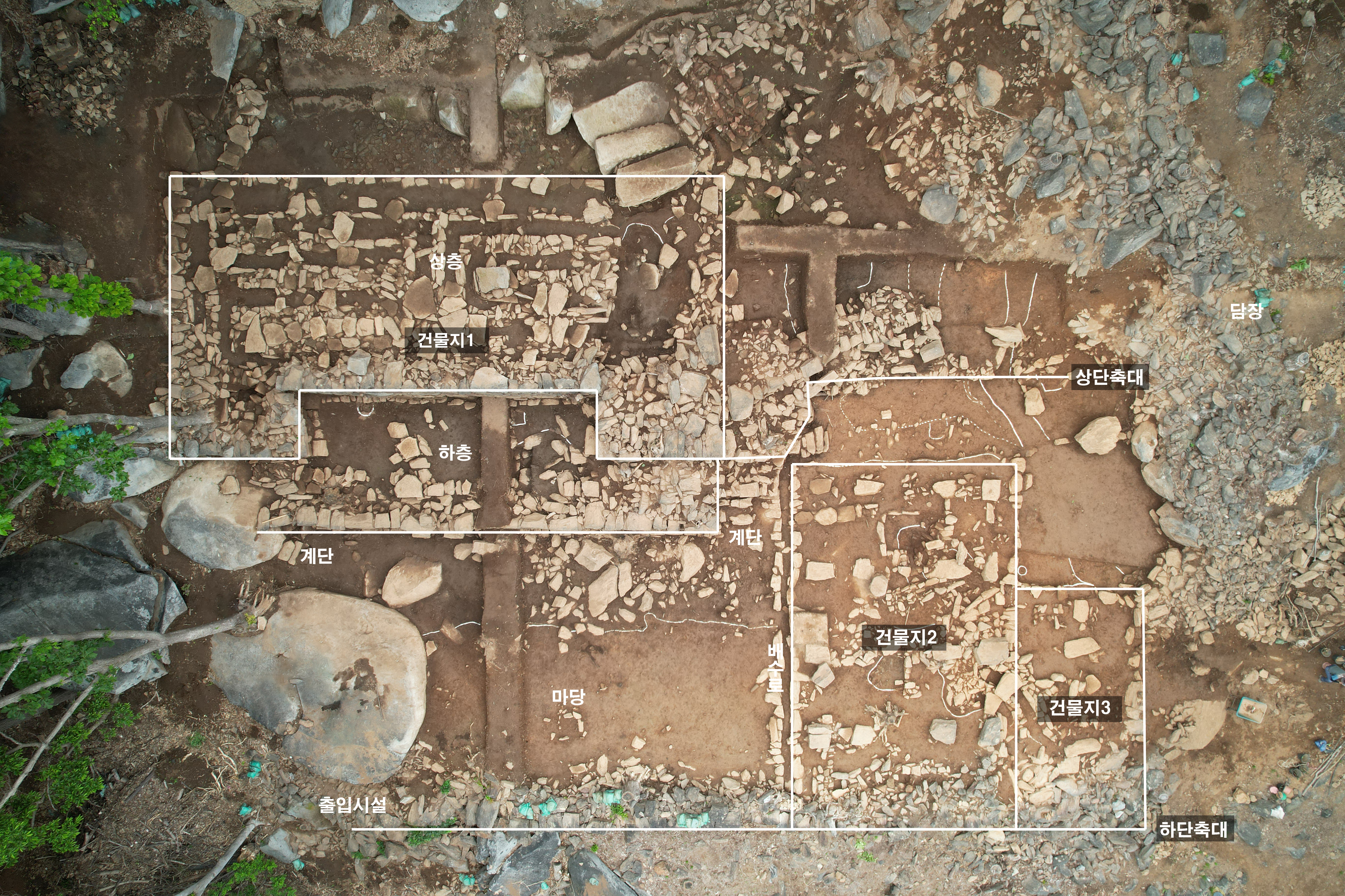 조사 결과 이곳은 서쪽 계곡이 있는 데서 하단 평탄대지로 진입하도록 설계됐으며, 하단 평탄대지 마당을 중심으로 북쪽과 동쪽에 각각 건물을 직각을 이룬 상태로 배치한 것으로 드러났다.