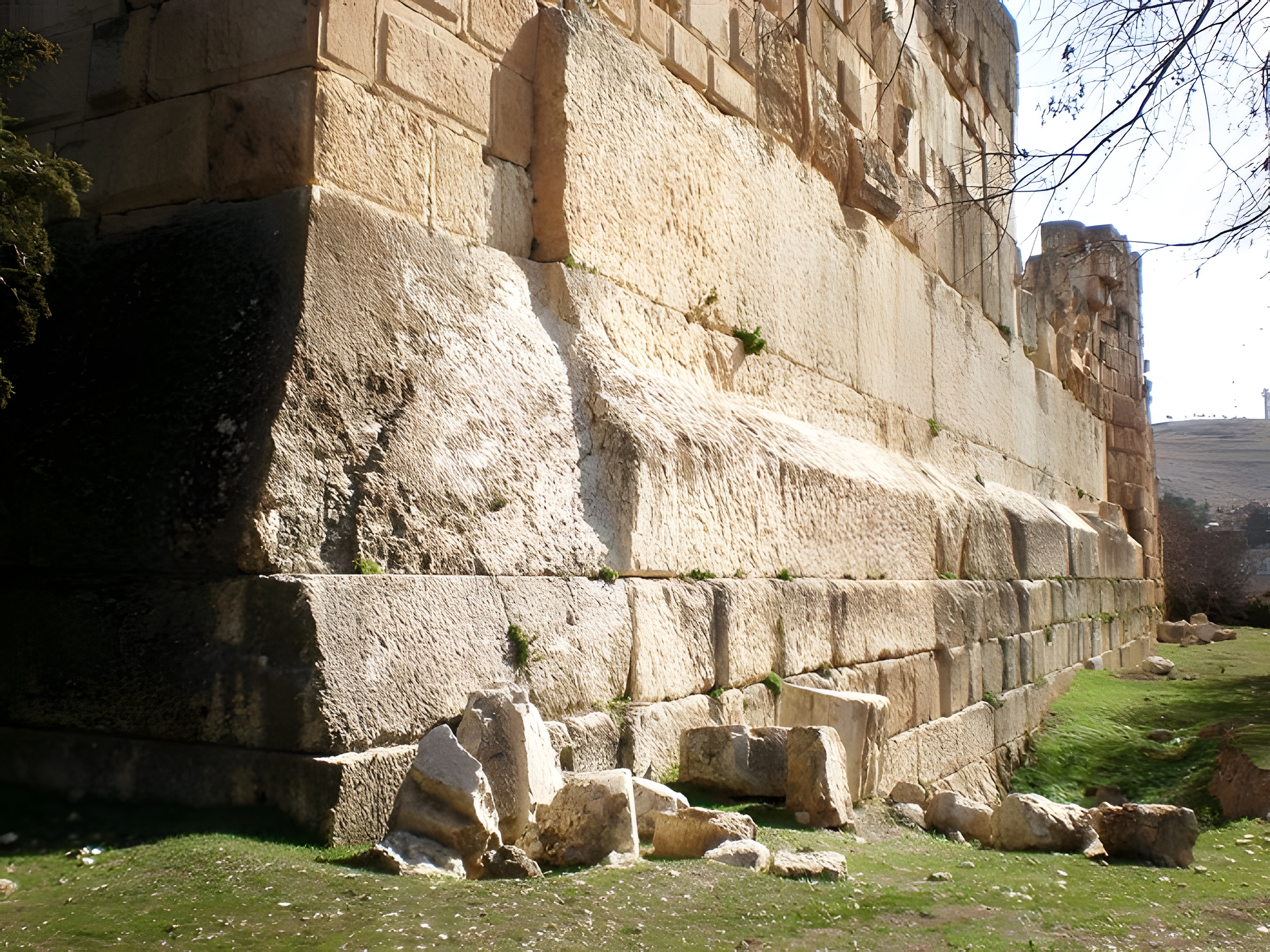 인근 사원 단지에는 트릴리톤 돌 Trilithon Stone 로 알려진 약간 작지만 여전히 거대한 돌덩이가 있다는데 각각 무게가 약 800톤에 달하는 이 돌들은 유피테르 신전 기초 부분을 형성한다고 한다.