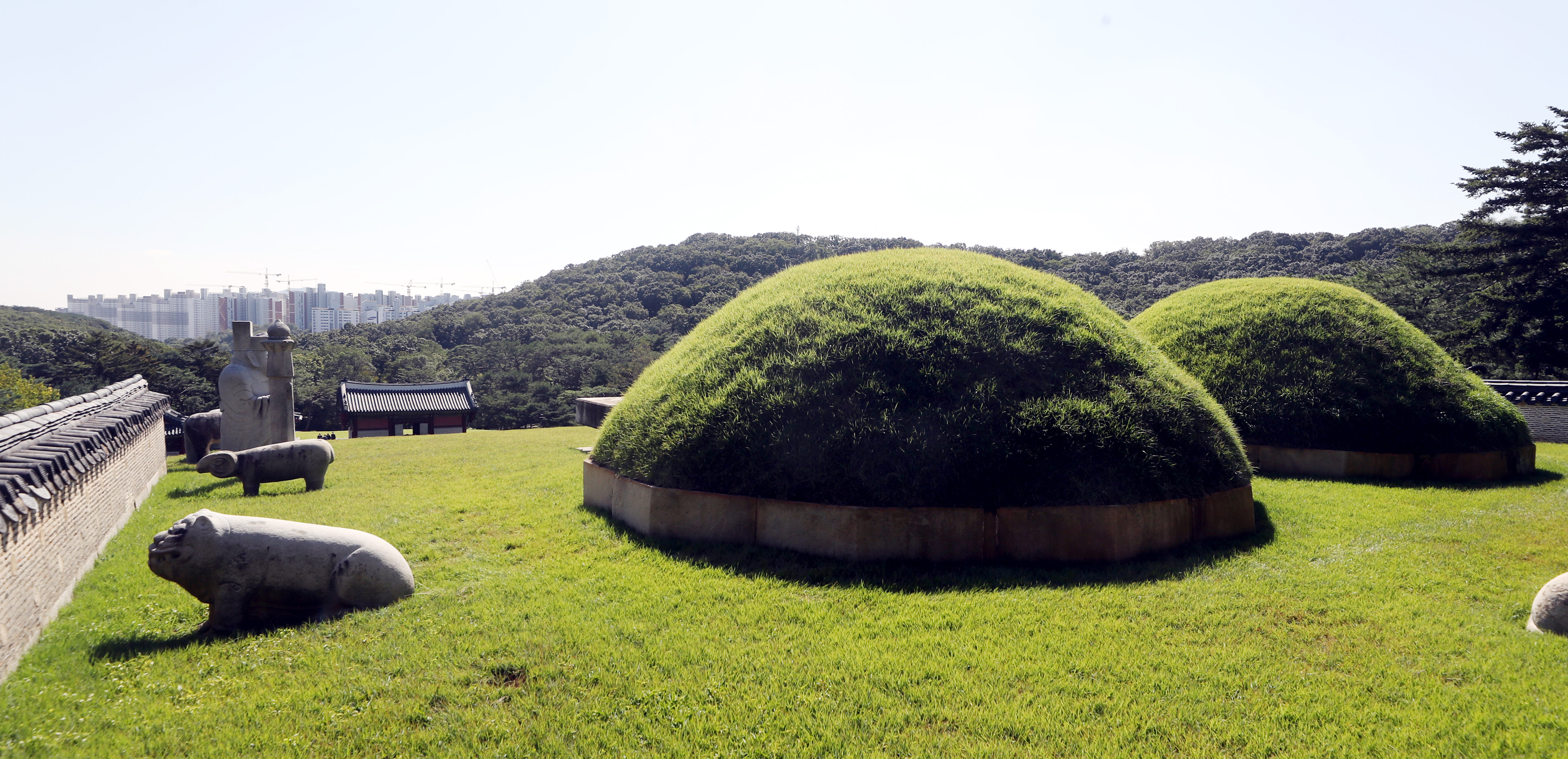 보통 우리가 소비하는 무덤, 특히 조선왕릉의 경우 그 전형이 아래 사진이다.