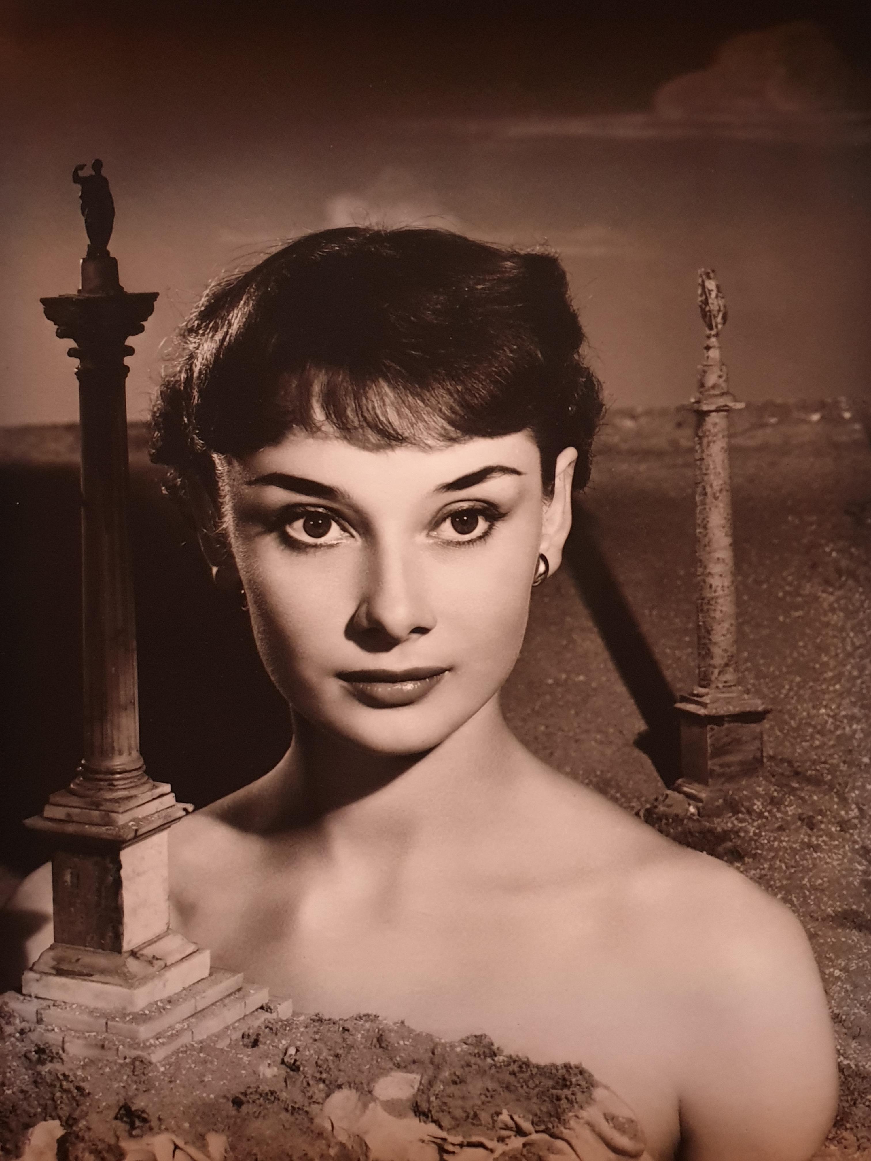 이 사진은 원래 헵번이 유명세를 타기 전인 1950년에 광고 사진으로 촬영한 것이다. 당시 '신선한 얼굴'을 발굴하라는 요청을 받았던 작가는 아직 무명이었던 헵번을 기용했다. 광고는 큰 성공을 거두었고 헵번은 세계적인 스타로 발돋움하게 되었다. 고대 건축물의 미니어처 소품과 인물을 배치한 기괴한 비율이 환상적인 느낌을 주는 작품이다.