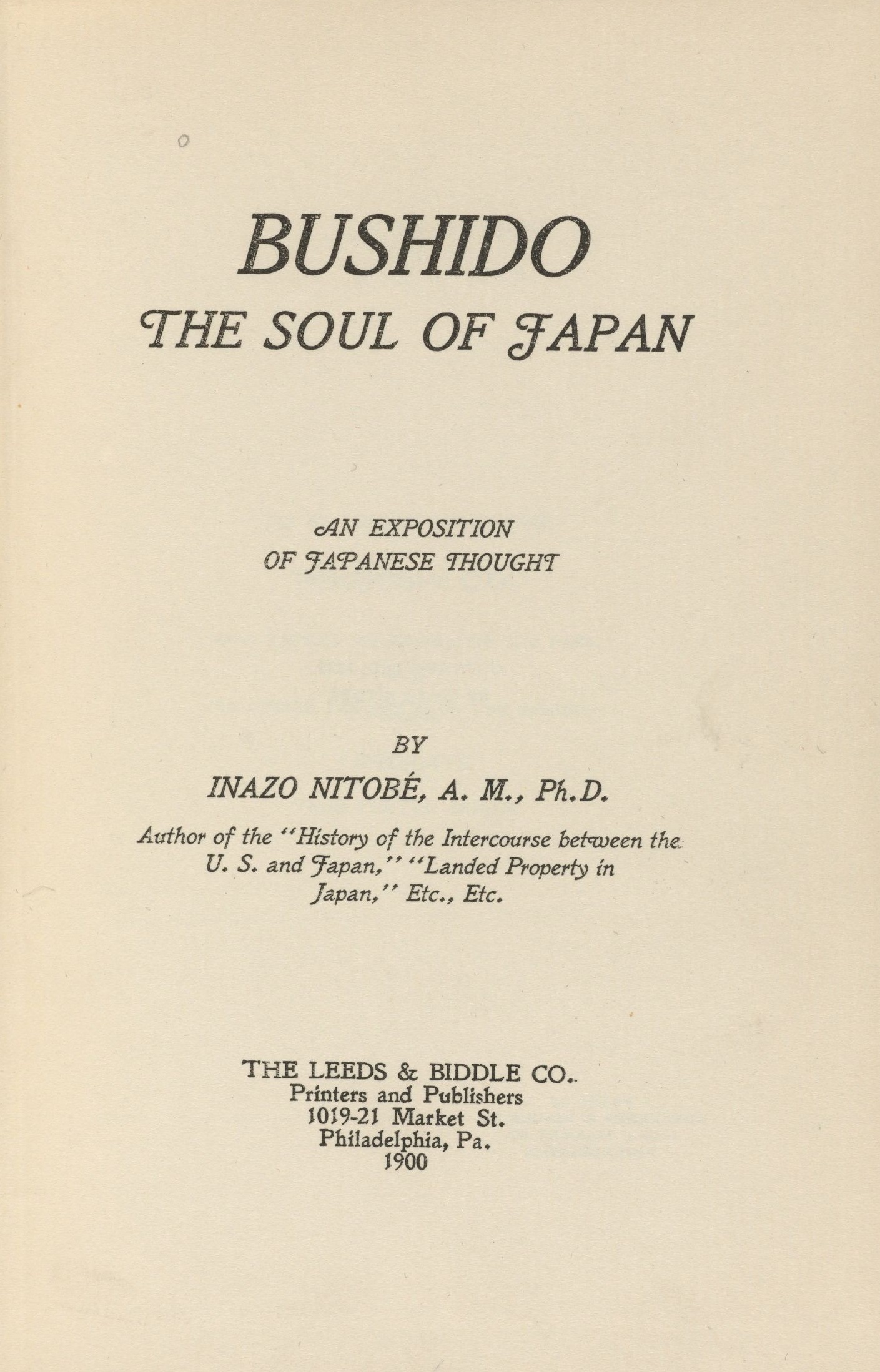 그가 영문판 《Bushido》 라는 책자를 내기는 1899년 미국 필라델피아에서였다. 우리가 아는 무사도武士道는 니토베 이나조의 발명품이다.