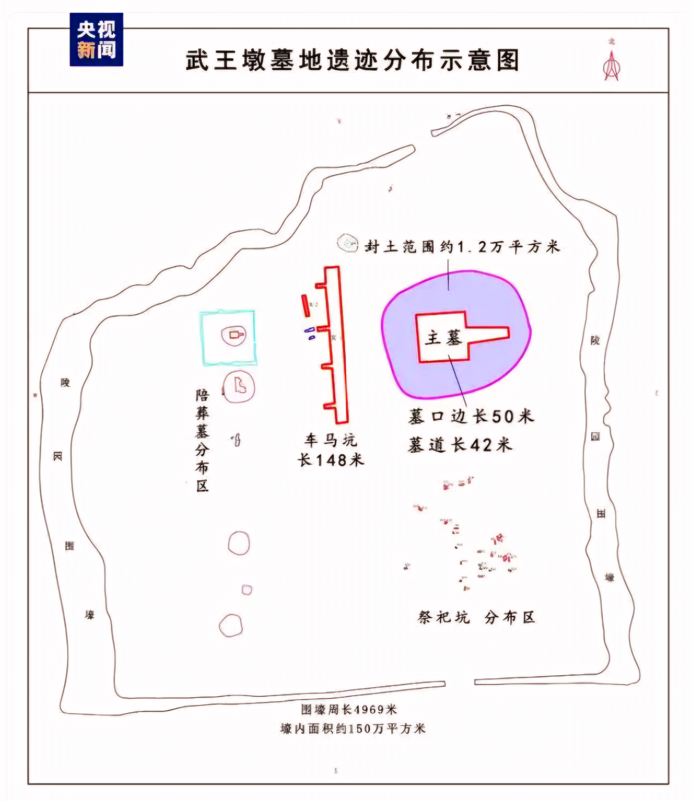 고고 조사 결과를 통해 이 무덤은 전체 묘원墓园 범위가 2,100여 묘亩다.