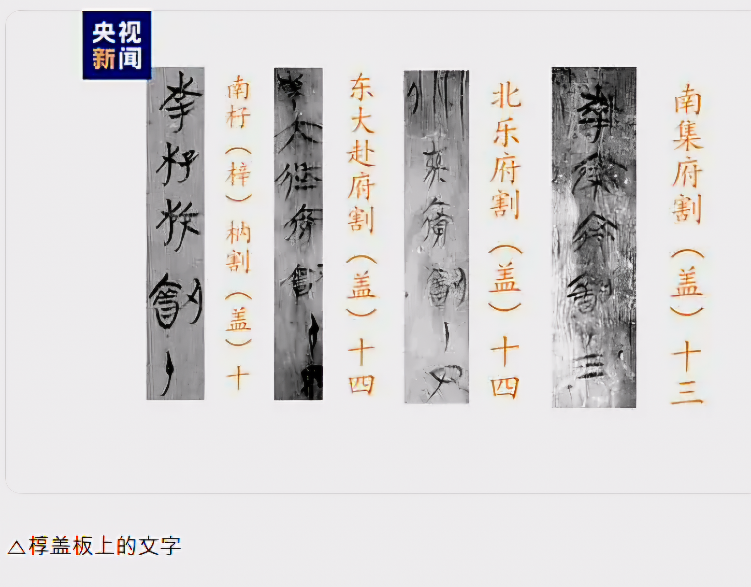 곽실椁室 개판 위에서는 묵서墨书 문자가 드러나는데 현재까지 파악된 것만 100여 구句라 근 천자에 이르며 개판盖板의 위치와 각 측실의 기능을 표시했다.
