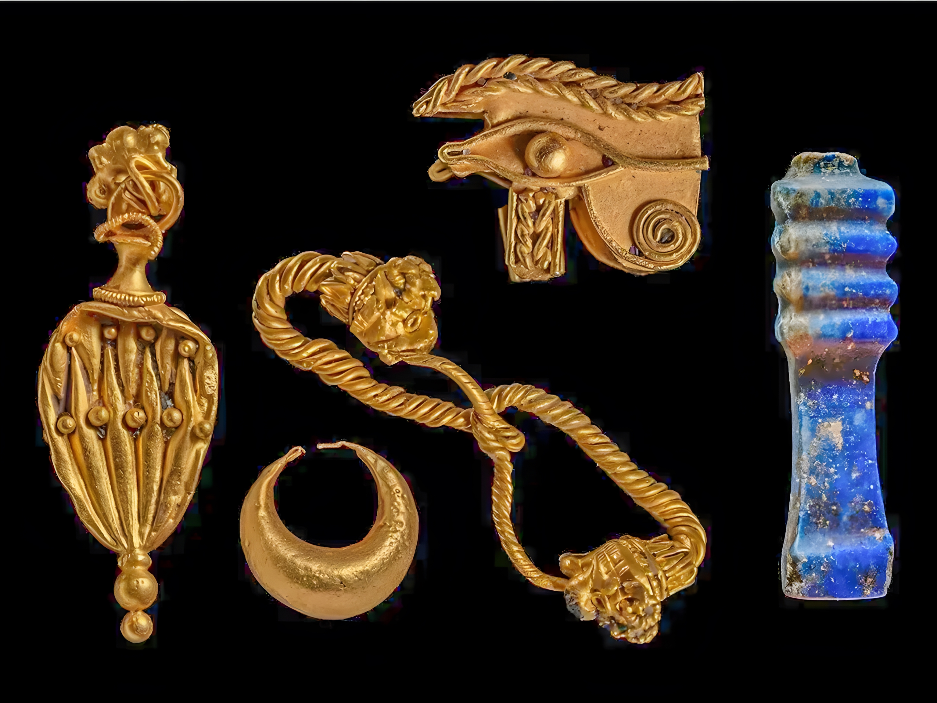 고고학자들은 또한 사원 금고에서 금 장신구와 라피스 라줄리lapis lazuli라고 불리는 파란색 반귀석semi-precious stone으로 만든 안정성 상징인 "Djed pillar"를 포함한 유물들을 발견했다. 그들은 또한 은으로 된 접시와 제사 의식 동안 향수와 비구unguents를 담는 데 사용되었을 것으로 추정되는 알라바스터 용기alabaster container도 발견했다.