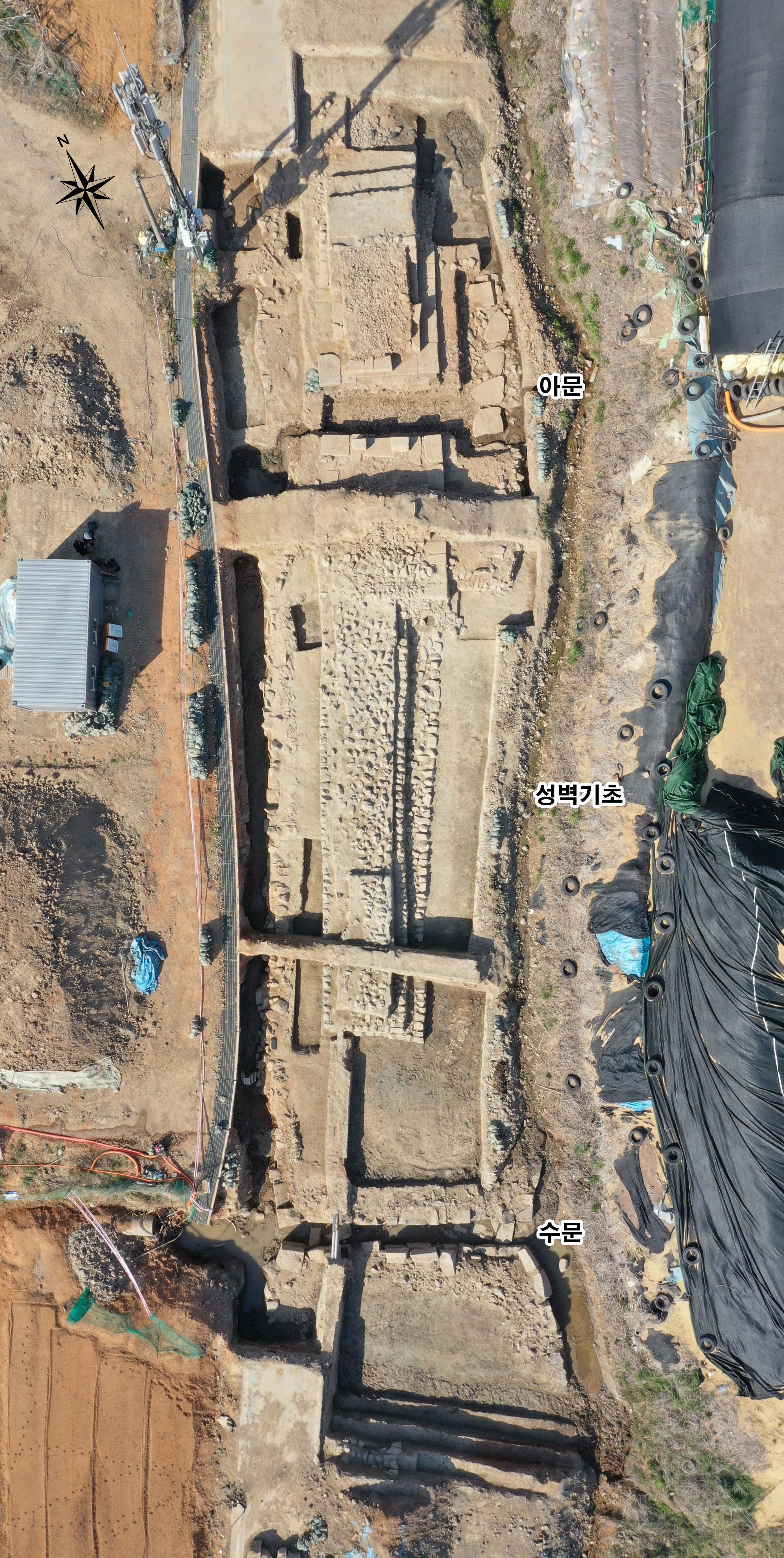 아문(亞門)은 바닥면이 남아있어 아문의 규모와 조성순서를 알 수 있다. 수문(水門)은 조사지역이 오랫동안 경작지로 활용되면서 일부가 훼손되었으나, 벽면과 바닥이 비교적 잘 남아 있어 구조를 확인할 수 있었다.